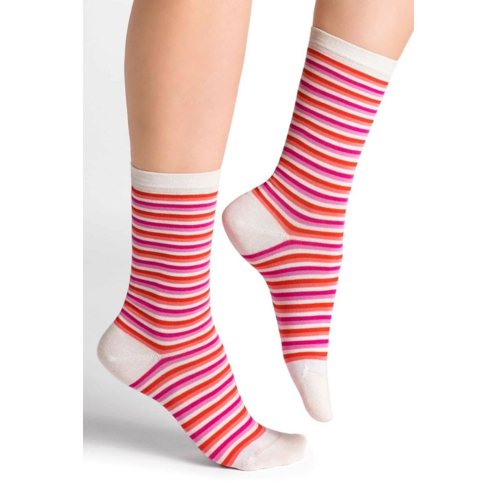 Bleuforêt propose sa version de la rayure, motif incontournable du dressing féminin. Tricotées à partir d'un coton de grande qualité, ces chaussettes fantaisie sont un véritable écrin de confort. Fines, douces et tendance, elles vous accompagneront toute la saison.