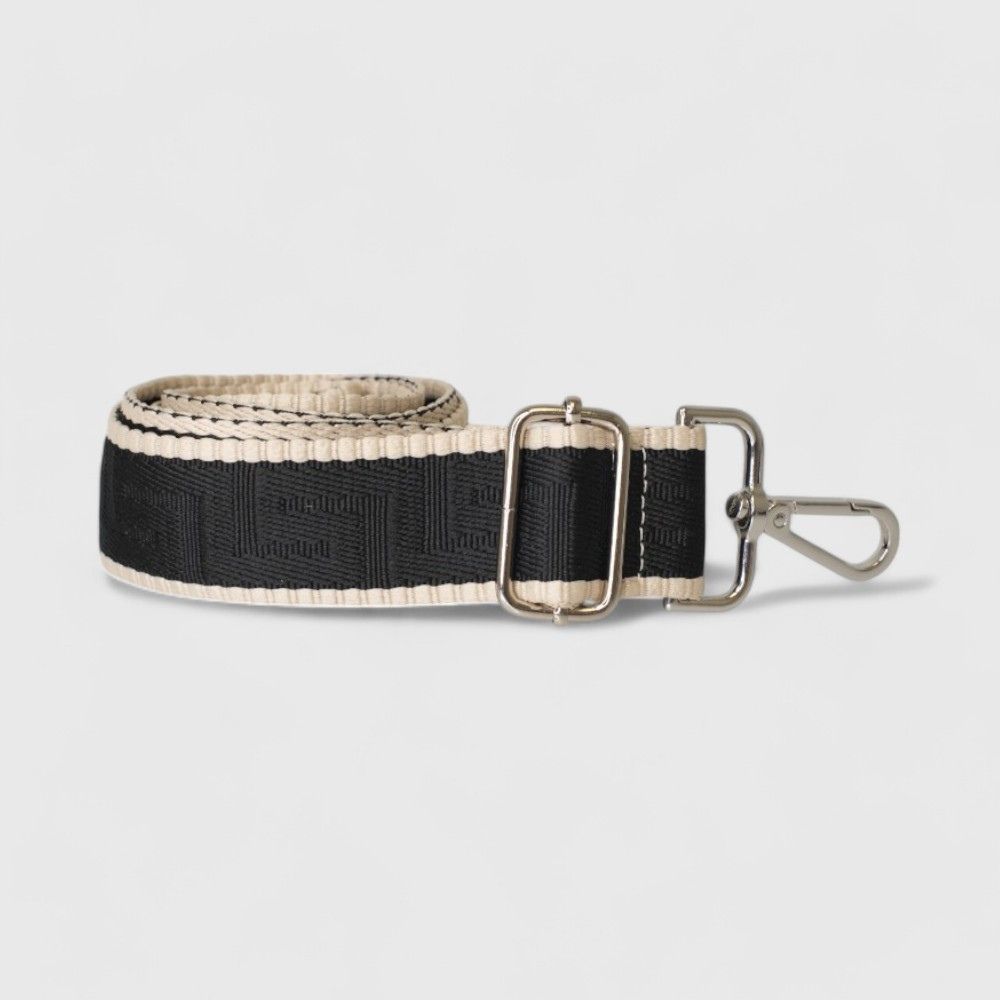 Cette courroie en tissu noir se distingue par son aspect à la fois sobre et robuste. Réalisée dans une sangle textile épaisse au tissage en chevrons, elle offre une excellente résistance tout en conservant une certaine élégance. Sa longueur est réglable grâce à une boucle métallique, ce qui permet de l’adapter facilement à différents usages et morphologies. Les finitions en métal argenté, comprenant un mousqueton solide et des anneaux renforcés, assurent une fixation fiable et durable. Polyvalente et pratique, cette courroie convient parfaitement comme bandoulière de sac ou sangle de transport pour divers accessoires.