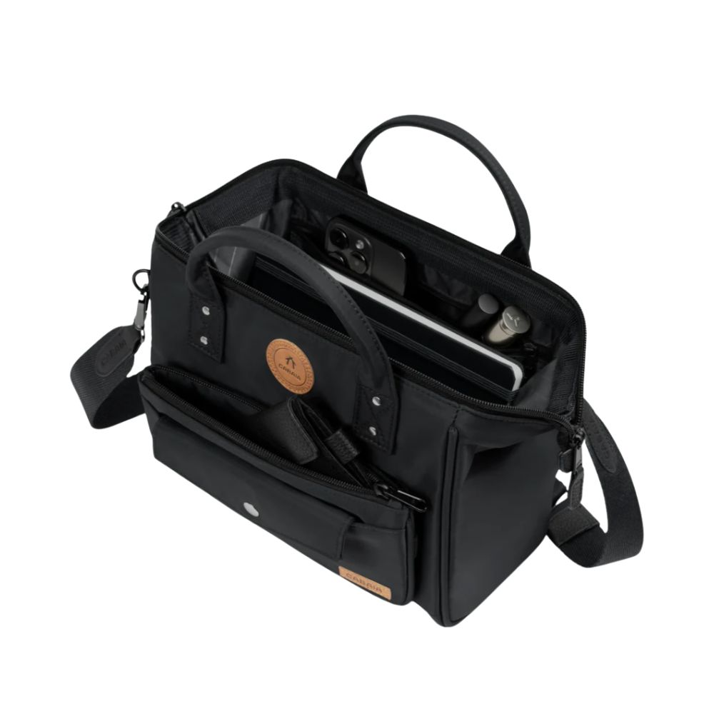Son ouverture grand angle permet un accès facile à vos affaires, tandis que son intérieur astucieusement organisé comprend une poche zippée, un séparateur avec fermeture éclair et un mousqueton pour accrocher vos clés. Une poche arrière zippée complète l’ensemble pour encore plus de sécurité.
