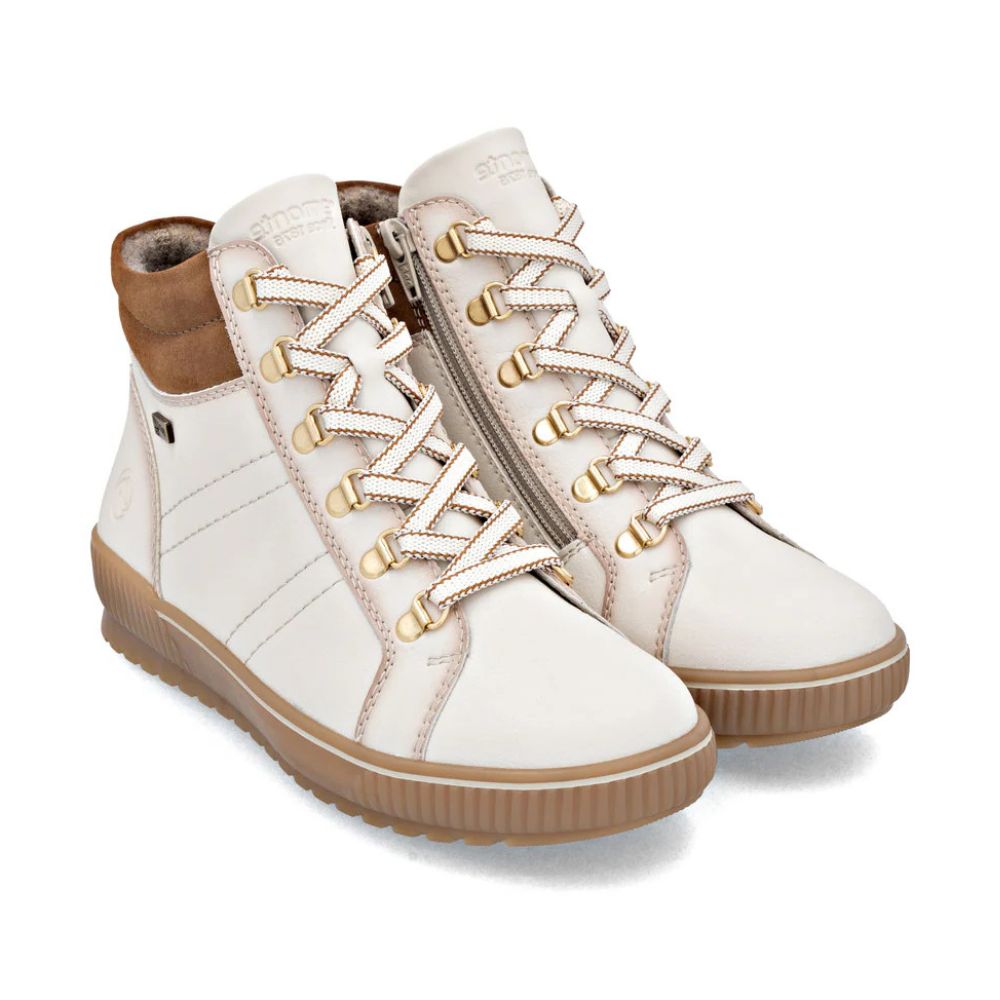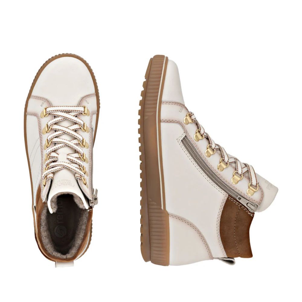 Design tendance et confort : le duo idéal de la saison ! Ces bottines à lacets Remonte en cuir lisse ont tout pour plaire. Le laçage, associé à la fermeture éclair, allie fonctionnalité et confort. Des lacets interchangeables sont également inclus. La semelle amortissante et flexible, ainsi que la semelle intérieure rembourrée et amovible, offrent un confort optimal. La largeur confort, qui offre plus d'espace, est un atout supplémentaire. Grâce à la technologie remonteTEX, la chaussure est déperlante et protège du vent. Difficile de faire plus confortable !