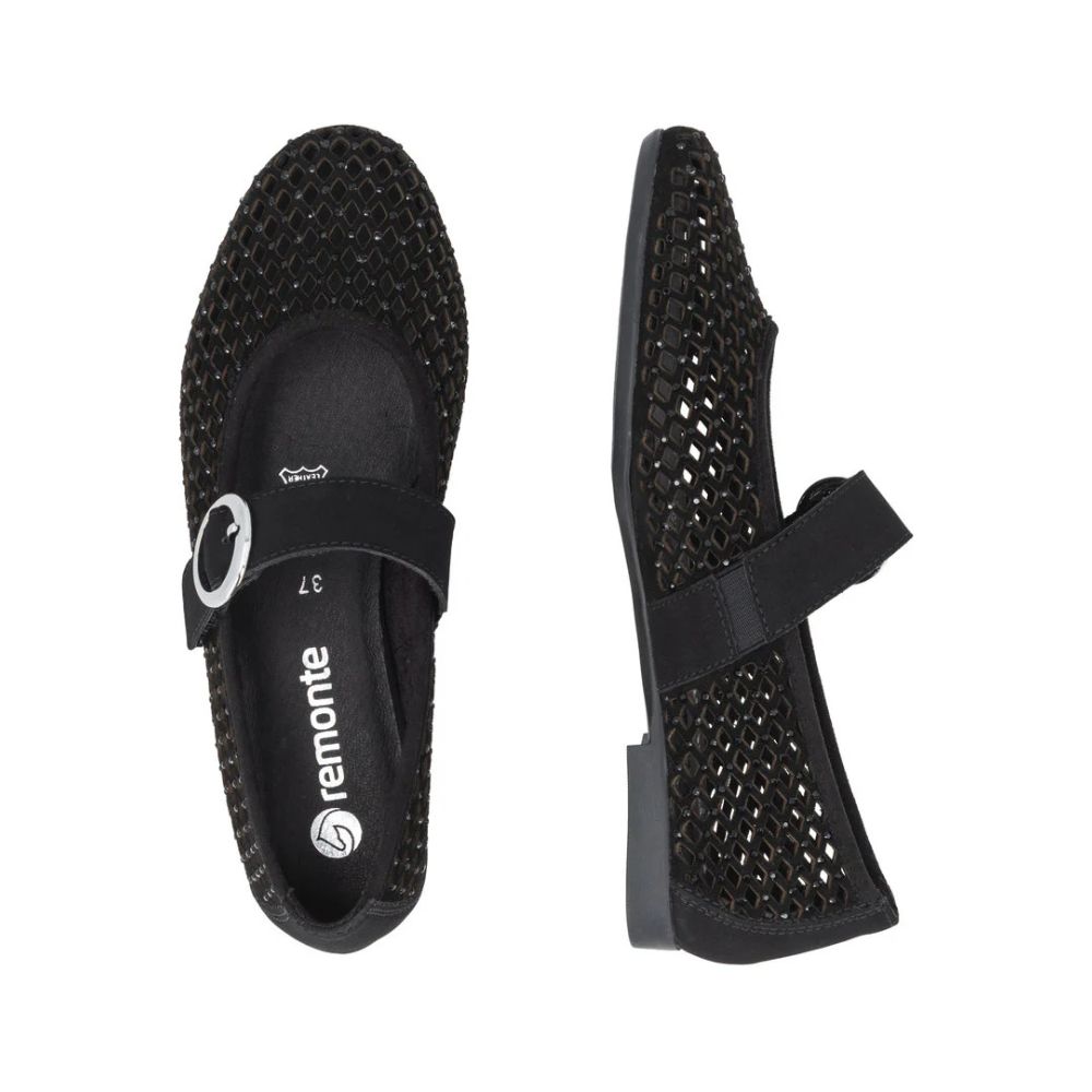 Élégante en toutes circonstances ! Cette ballerine Remonte en daim noir est la chaussure idéale pour toutes les occasions. Une fermeture auto-agrippante permet de l'enfiler facilement et rapidement. Les élégantes perforations décoratives apportent une touche de raffinement. La semelle extérieure adhérente et amortissante, associée à la semelle intérieure amovible et rembourrée en cuir, assure un confort optimal à chaque pas. L'intérieur est doublé de cuir et de microvelours pour une respirabilité maximale. Fidèle à sa devise : confort et élégance réunis.
