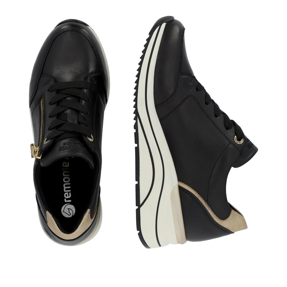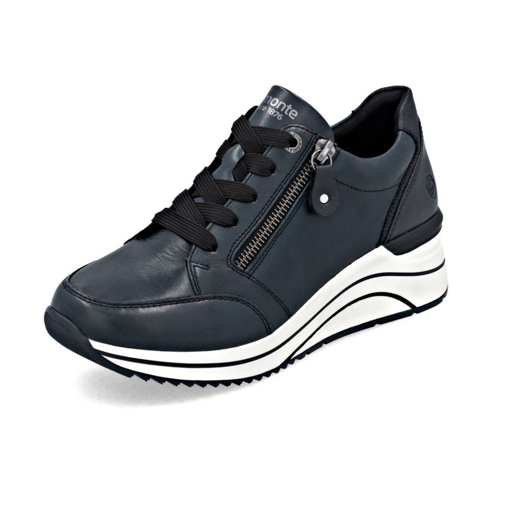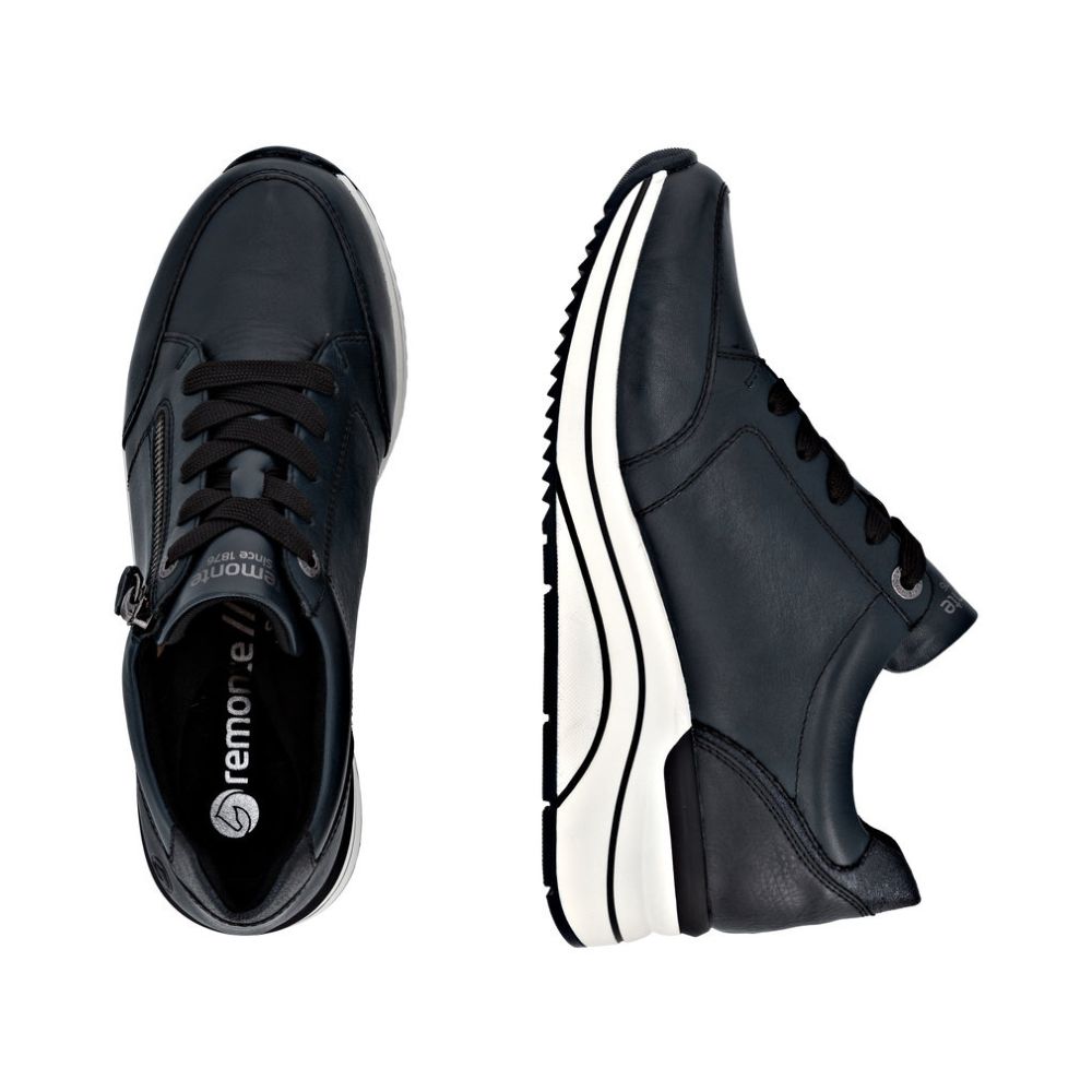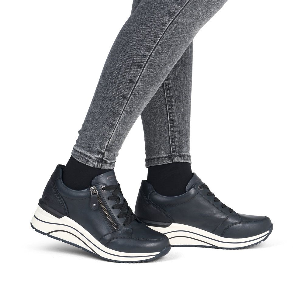 Chic et classe ! Ces baskets basses bleu marine Remonte en cuir lisse ne passeront pas inaperçues. L'association astucieuse du laçage et de la fermeture éclair offre un maintien optimal et facilite l'enfilage et le retrait. Grâce à la technologie éprouvée Remonte Lite 'n Soft et à la semelle intérieure rembourrée et amovible, ces baskets sont légères et confortables. De plus, leur largeur supplémentaire offre une plus grande liberté de mouvement à l'avant-pied. Elles sont équipées d'une membrane déperlante pour garder les pieds au sec par temps venteux. On adore !