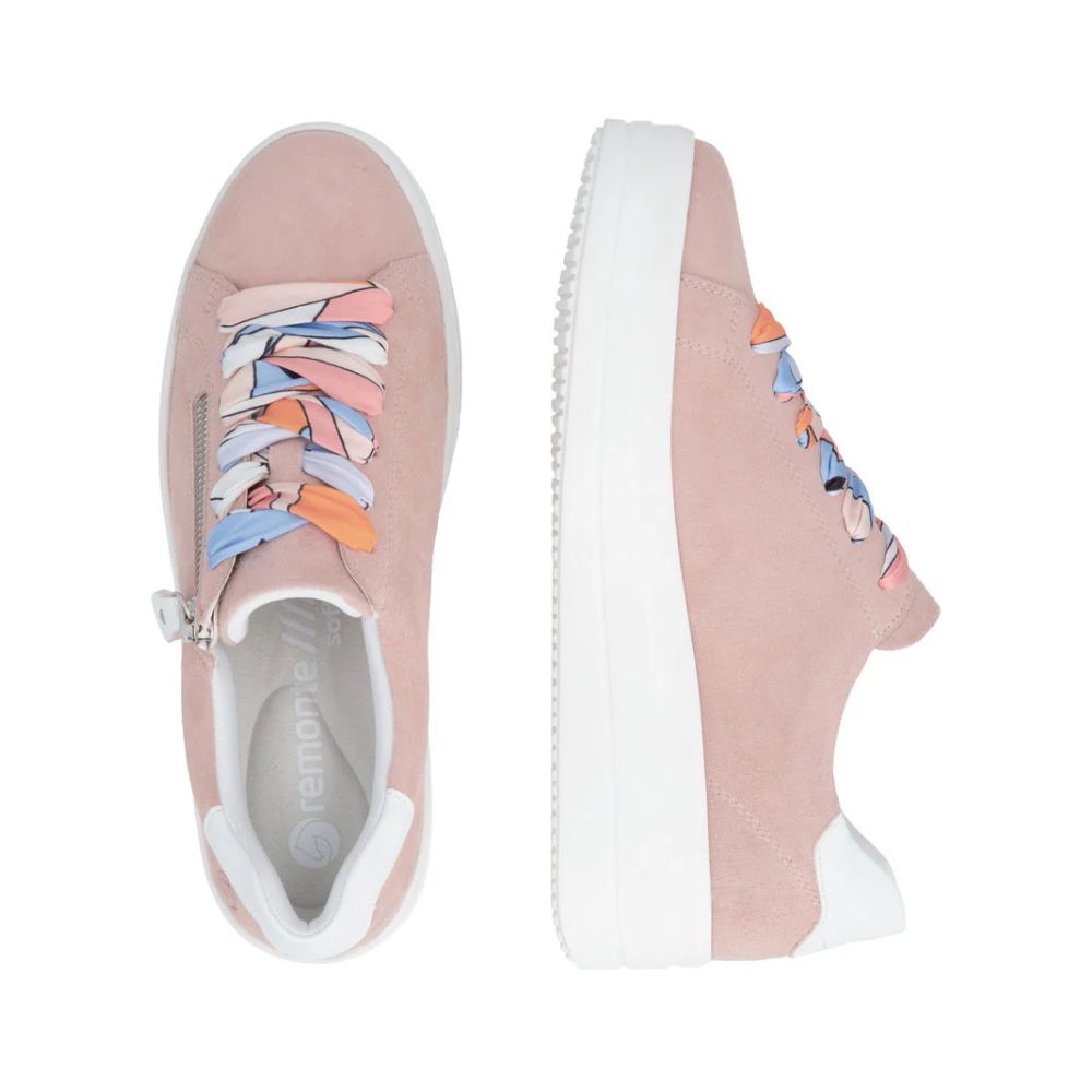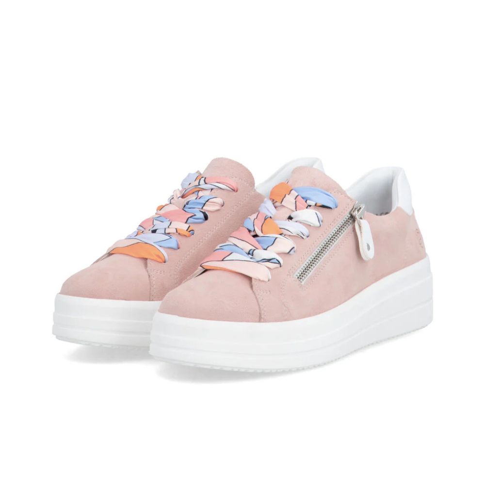 Style et confort ultimes ! Avec ces baskets Remonte en daim, vous serez toujours prête à faire une entrée remarquée. Malgré le laçage, la fermeture éclair permet de les fermer facilement. De plus, les lacets sont interchangeables. Grâce à la technologie éprouvée Remonte Lite 'n Soft et à la semelle intérieure rembourrée et amovible, ces baskets sont ultra-légères et confortables. Elles sont conçues pour un confort optimal et n'exercent aucune pression sur le pied. Ces baskets sont dotées d'une doublure légère en microvelours. De quoi vous mettre de bonne humeur !