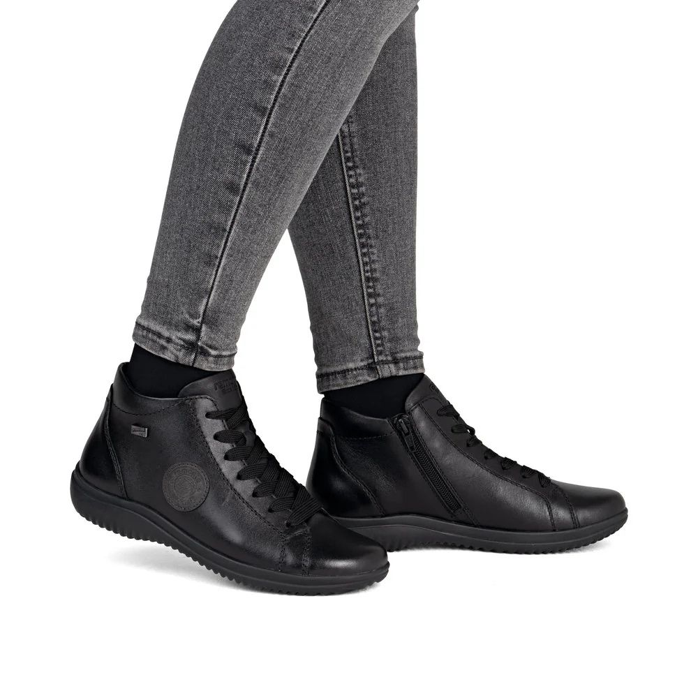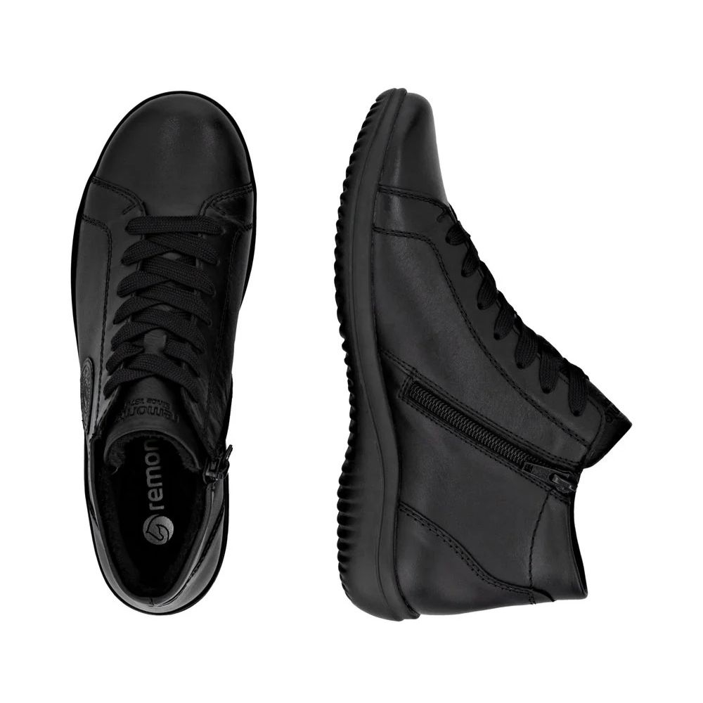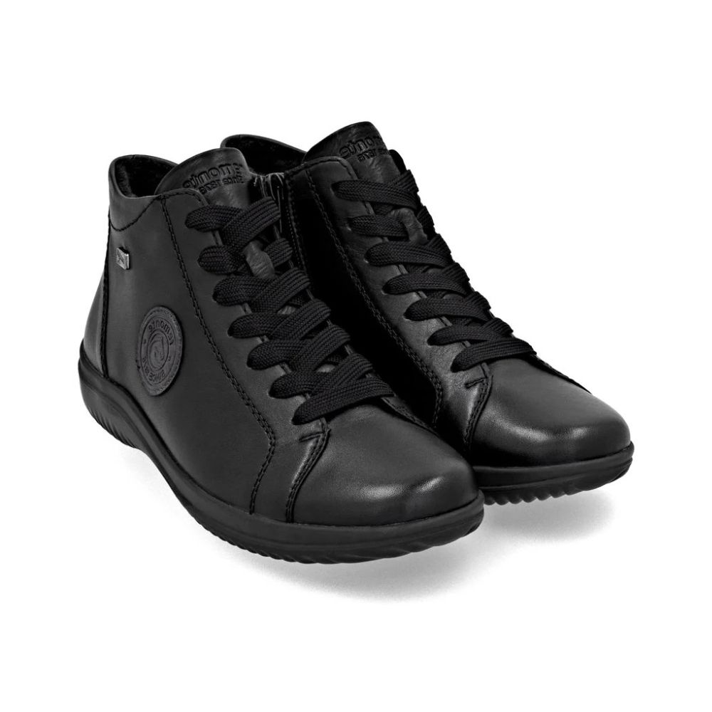 Le confort peut être résolument élégant ! Ces bottines noires à lacets Remonte, en cuir lisse, ne manqueront pas d'attirer les regards. Le laçage et la fermeture éclair s'harmonisent pour un confort et une fonctionnalité optimaux. Légères et confortables, elles associent une semelle intérieure rembourrée et amovible à une semelle extérieure ultra-légère. Leur largeur confort assure une grande liberté de mouvement. Grâce à la technologie RemonteTEX, ces bottines sont déperlantes et donc adaptées à toutes les conditions climatiques.