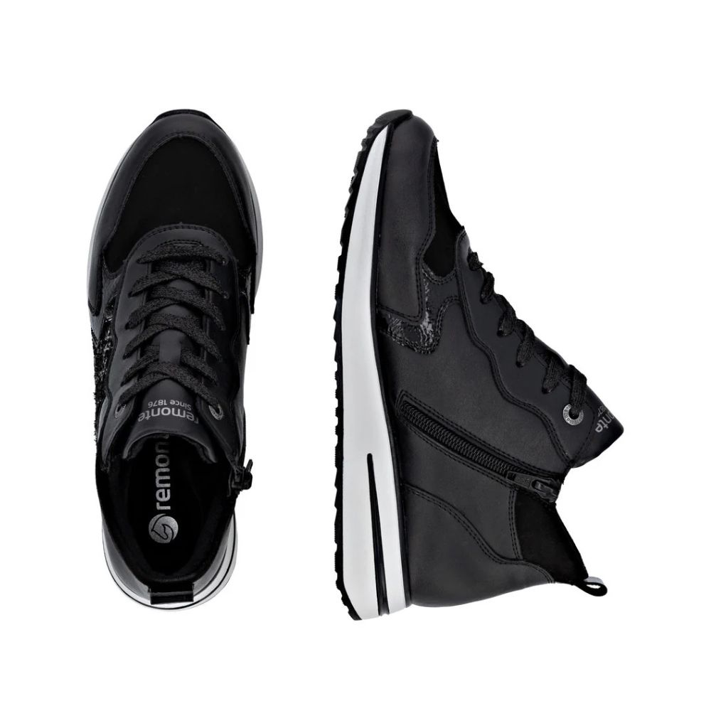 Design tendance et confort : le duo de rêve de la saison ! Ces baskets montantes Remonte ont tout pour plaire. Le laçage complète la fermeture éclair et garantit un maintien optimal et un ajustement parfait. La technologie Lite 'n Soft, avec sa semelle ultra-légère et sa semelle intérieure rembourrée et amovible, assure un confort optimal.