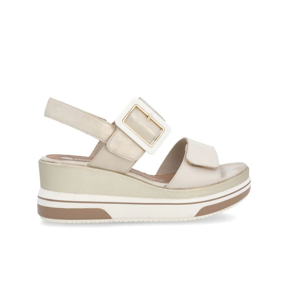 Style ET confort : il n'y a pas de « ou » ! Ces sandales compensées métallisées Remonte ont tout pour plaire. Les brides et la fermeture auto-agrippante assurent un maintien optimal. Leurs atouts fonctionnels sont parfaitement complétés par une semelle intérieure souple et une semelle légère et amortissante à talon compensé. Pour les femmes aux pieds larges, ces sandales sont également disponibles en grandes tailles. Impossible de faire plus confortable !