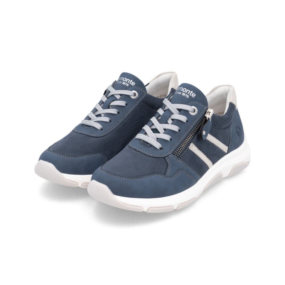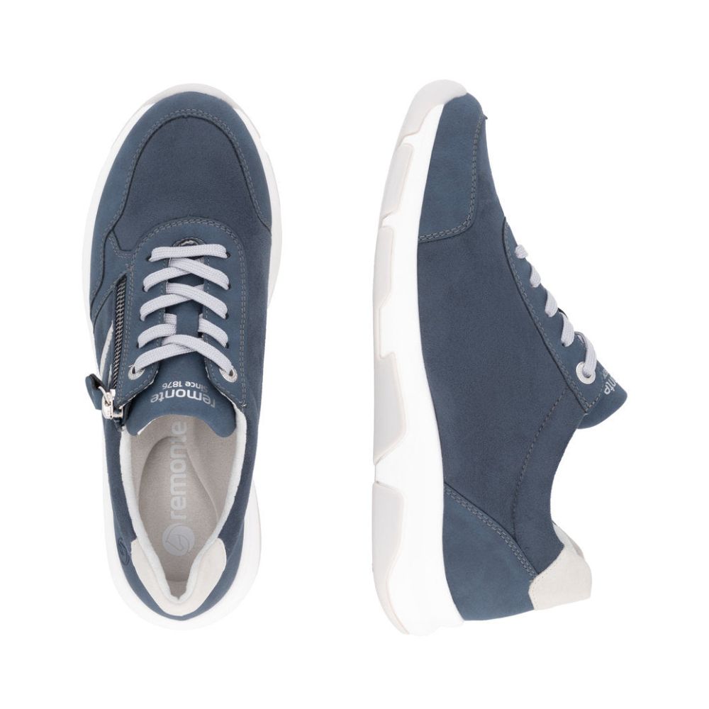 Chic et classe ! Ces baskets basses bleues Remonte sauront vous inspirer. L'association astucieuse du laçage et de la fermeture éclair offre un maintien optimal et facilite l'enfilage et le retrait. La semelle intérieure rembourrée et amovible ainsi que la semelle légère et adhérente sont des atouts majeurs. La largeur confort offre suffisamment d'espace pour que vos pieds soient à l'aise, même en cas de port prolongé. La doublure est en microvelours léger et respirant. Difficile de faire plus confortable !