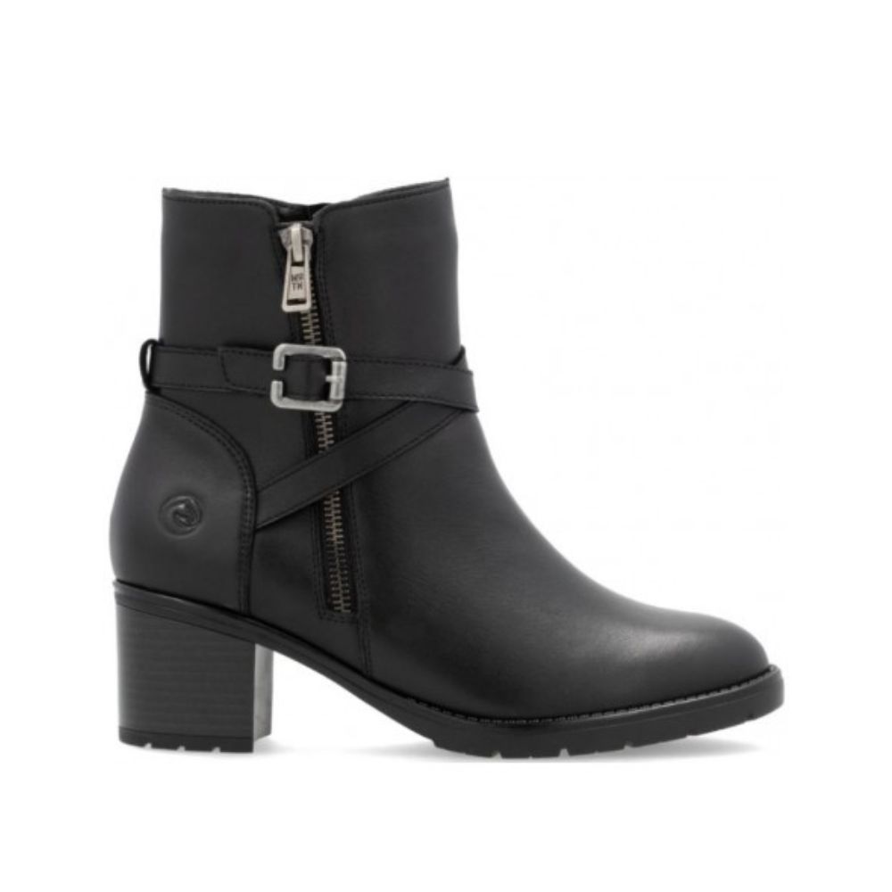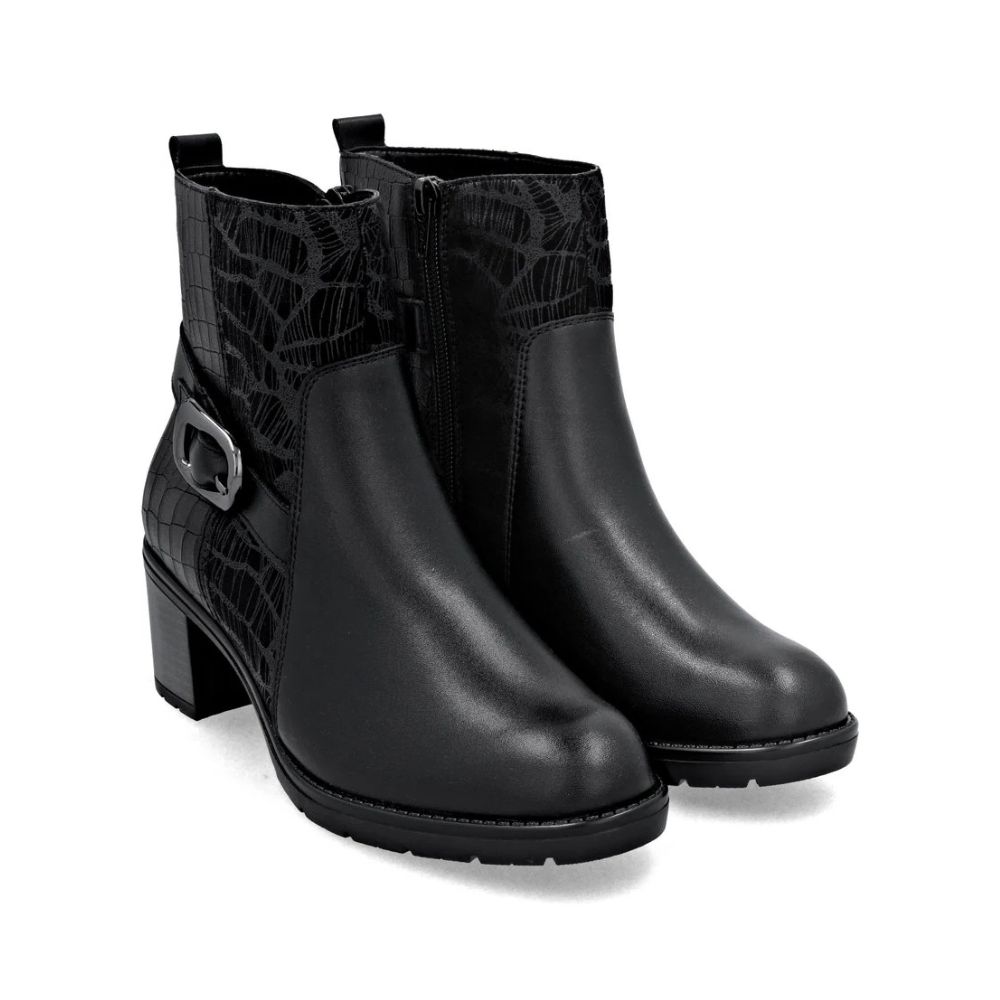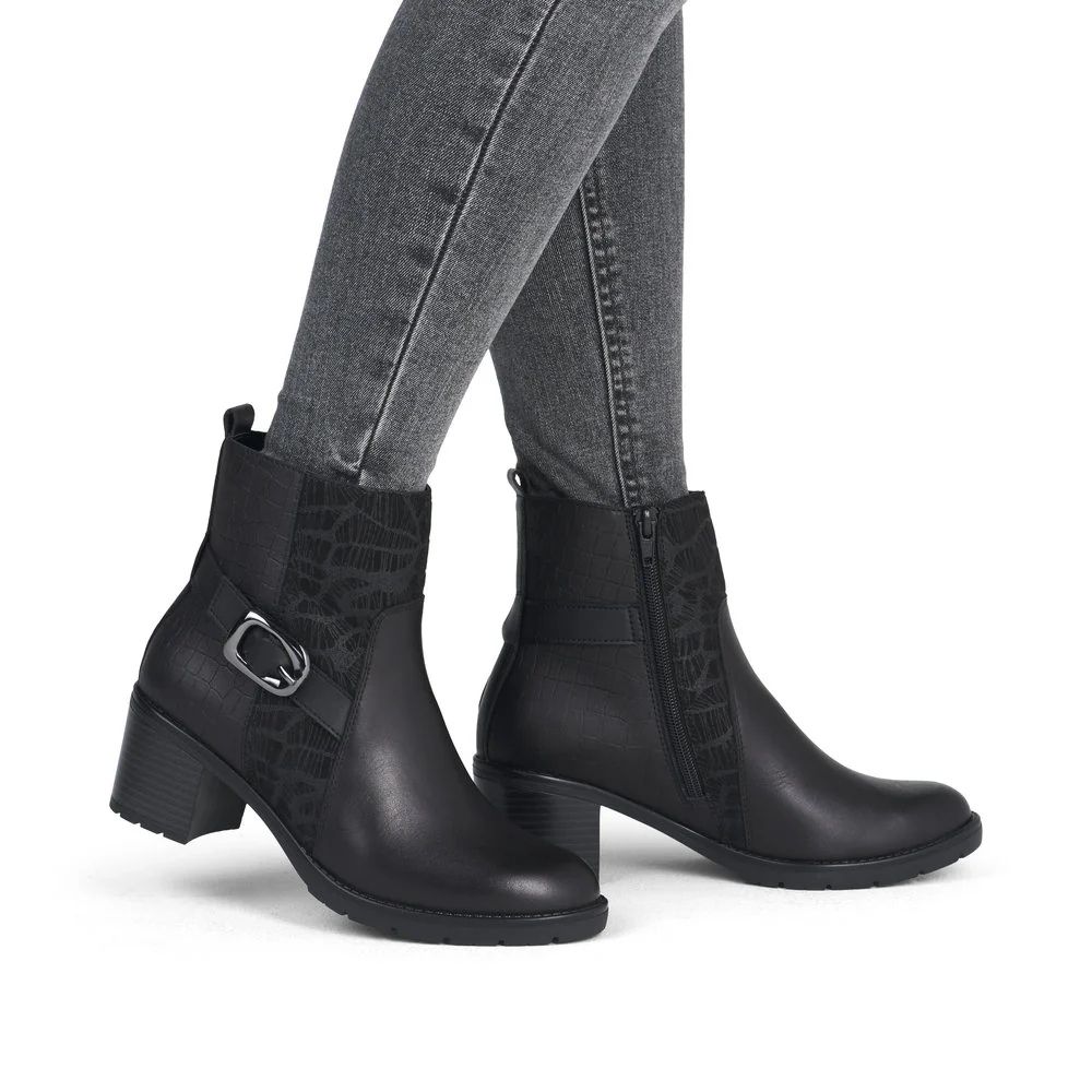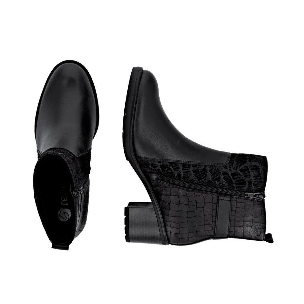 Place à la performance ! Ces bottines noires Remont en cuir lisse arborent une couleur classique qui s'accorde avec tout ! La fermeture éclair permet de les enfiler et de les retirer facilement. La semelle intérieure rembourrée et amovible est associée à une semelle extérieure adhérente et amortissante avec talon bloc qui assure un équilibre parfait, même sur les terrains les plus durs. On adore !