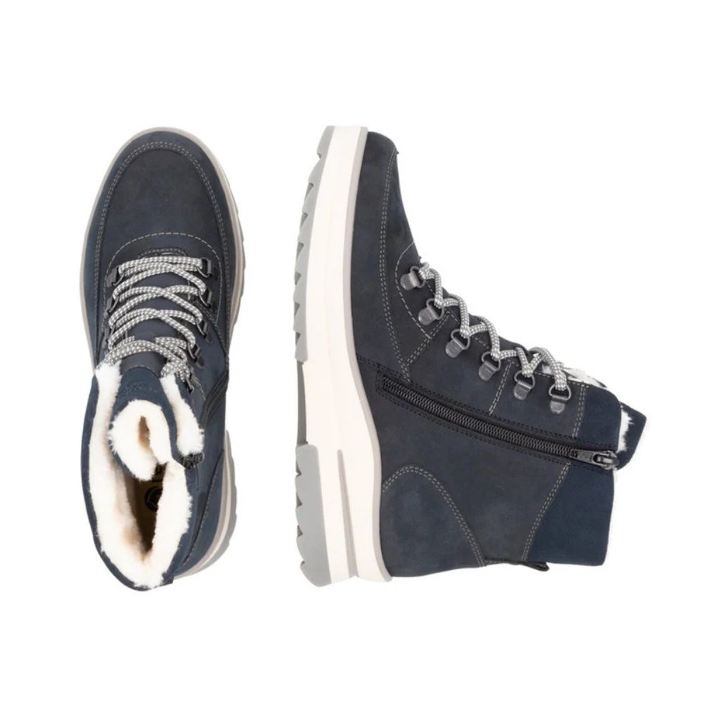 Profitez des journées froides ! Ces bottines Remonte à lacets en cuir suédé vous séduiront. L'association astucieuse du laçage et de la fermeture éclair offre un maintien optimal et facilite l'enfilage et le déchaussage. Les œillets originaux complètent harmonieusement le look. La semelle souple et adhérente assure un bon maintien. La largeur confort offre suffisamment d'espace pour que vos pieds soient à l'aise, même en cas de port prolongé. La tige déperlante protège de l'humidité, la semelle intérieure thermique maintient l'intérieur de la chaussure au chaud et la technologie fibre de verre assure une adhérence optimale. La laine vierge douillette et très chaude protège du froid. Impossible de faire plus confortable !