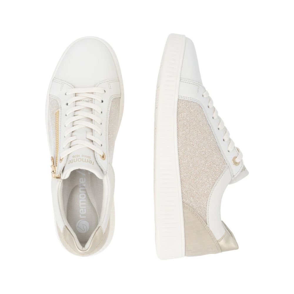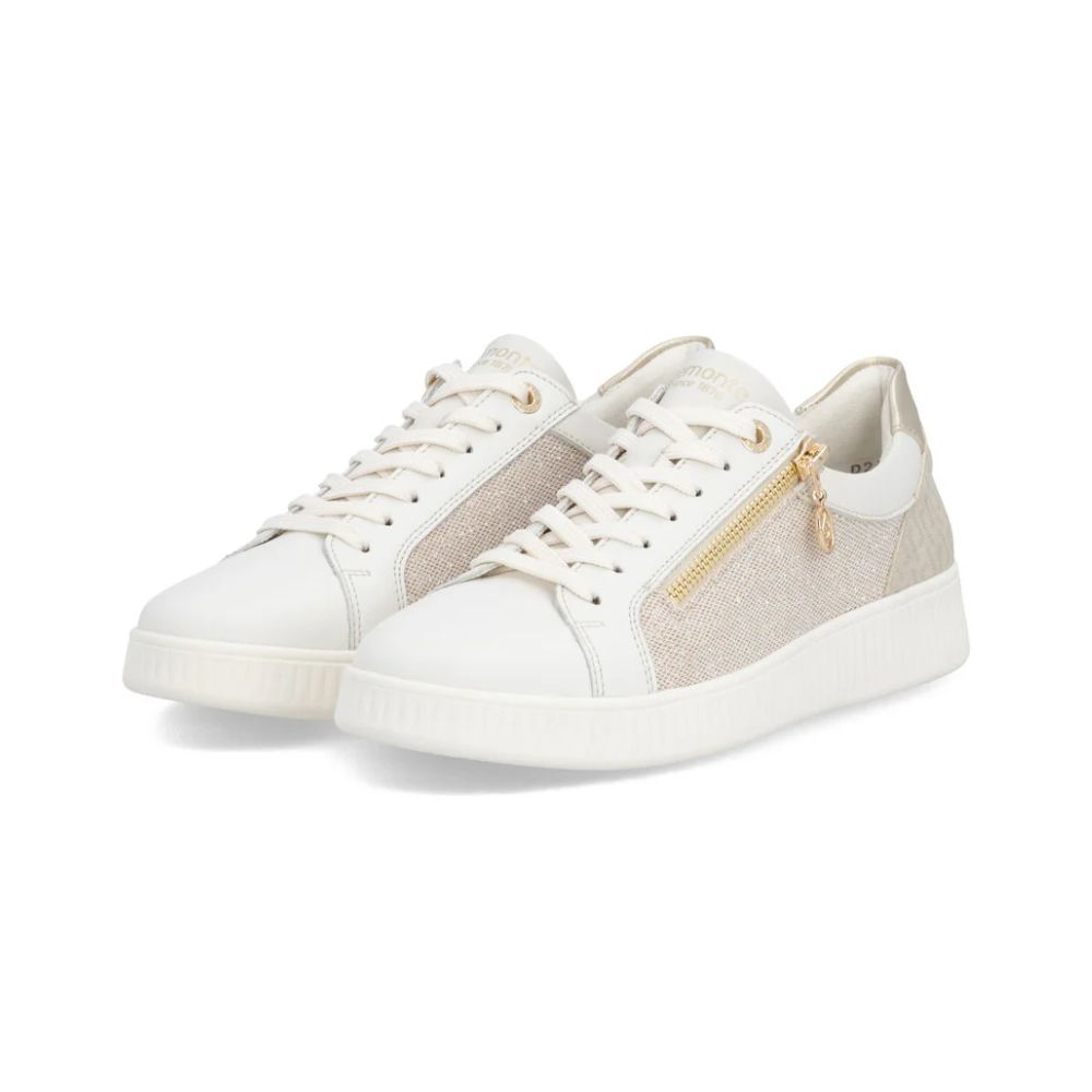 Reine du confort ! Cette sneaker Remonte basse en cuir lisse est un compagnon sportif et confortable. Le laçage complète la fermeture éclair pour plus de fonctionnalité et de confort. La technologie Lite 'n Soft combine une semelle extérieure légère et une semelle intérieure rembourrée et amovible. La largeur confort offre plus d'espace au pied. La sneaker est dotée d'une doublure légère en microvelours. Jackpot !