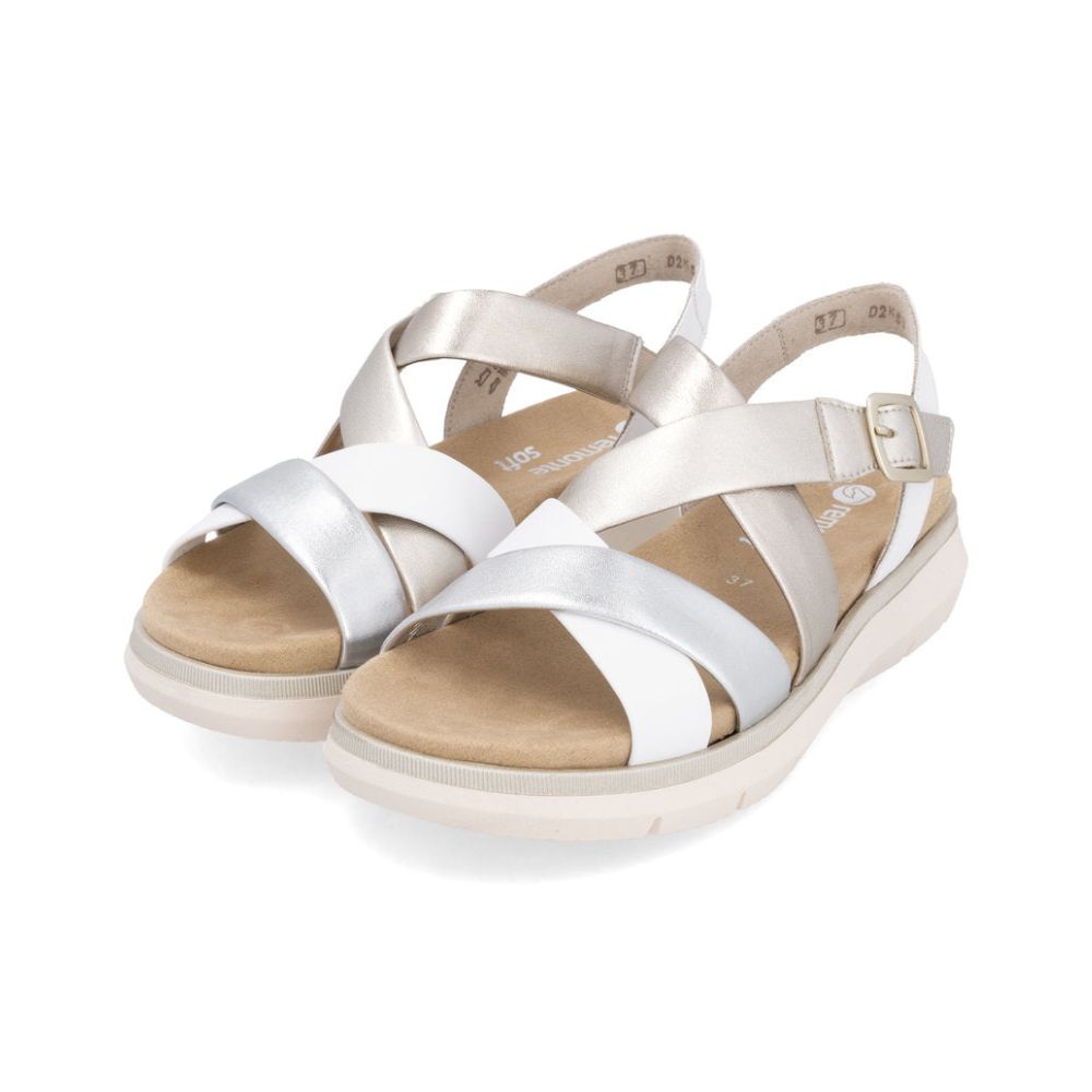 Reine du confort ! Chaque pas est estival avec ces sandales à brides Remonte en cuir lisse. Les brides offrent un maintien optimal et garantissent un ajustement optimal grâce à leur fermeture auto-agrippante. Lite 'n Soft : une semelle intérieure souple et amovible s'allie à une semelle extérieure ultra-légère. Pour toutes les femmes aux pieds larges, ces sandales sont également disponibles en grandes tailles. À vous de jouer !