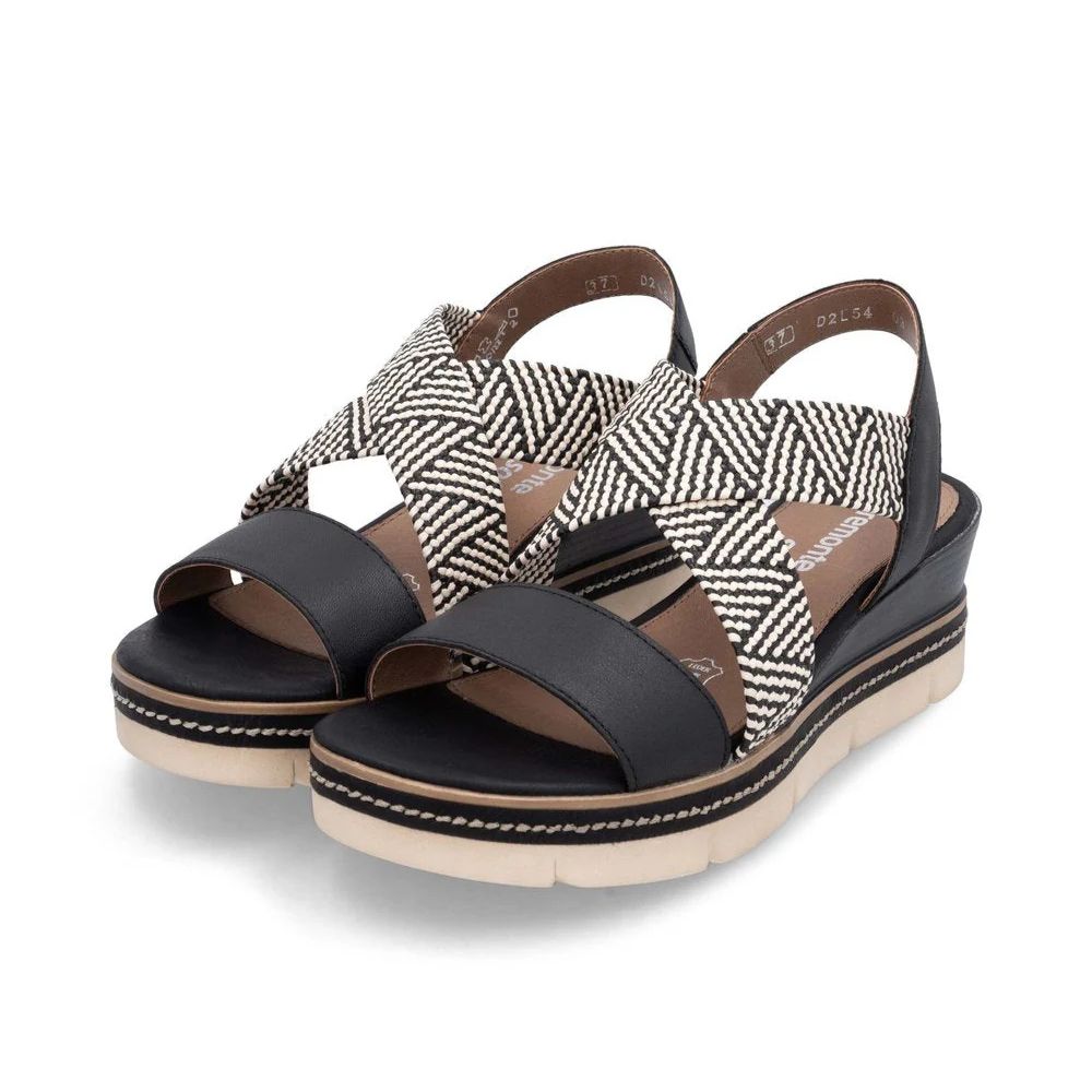 Le confort à son apogée : ces sandales compensées noires et blanches en cuir lisse séduisent autant par leur style que par leur confort éprouvé. L’élastique permet de les enfiler et de les retirer facilement et confortablement. La semelle légère et amortissante avec talon compensé et la semelle intérieure en cuir souple sont autant d’atouts supplémentaires. Un confort absolu !