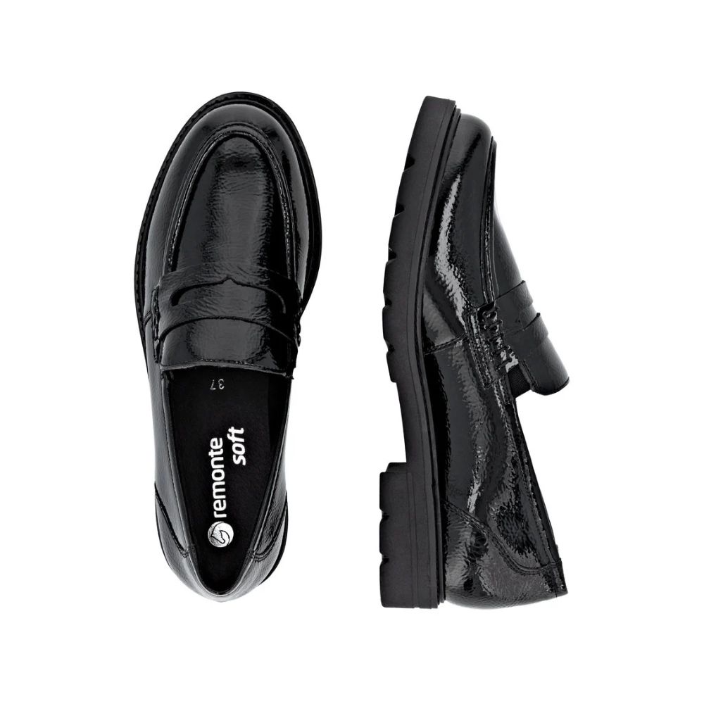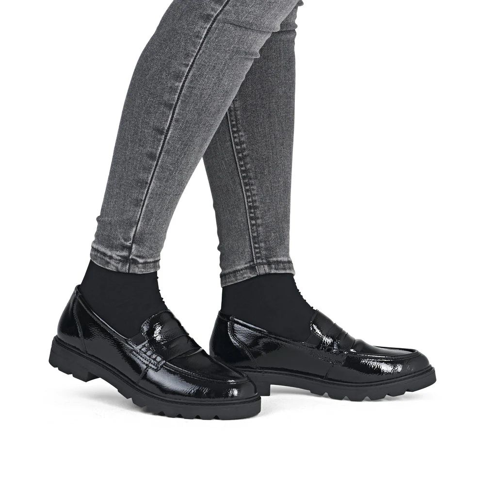 Élégant sur la route ! Ces mocassins Remonte noirs en cuir verni attirent tous les regards ! Les bandes élastiques assurent un maintien optimal. Lite 'n Soft : une semelle intérieure rembourrée et amovible s'associe à une semelle extérieure ultra-légère. La doublure intérieure en cuir souple et microvelours respirant assure un confort optimal.