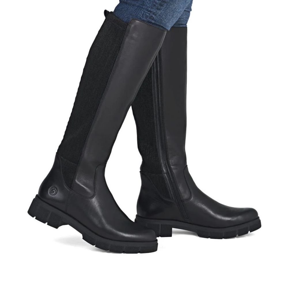 Se déplacer avec style ! Avec les bottes Remonte noires en cuir lisse, vous êtes cool et décontractée tout en ayant du style. En plus de la fermeture éclair, le modèle est doté d'un insert élastique, ce qui permet de l'enfiler facilement. La semelle adhérente et flexible et la semelle intérieure rembourrée et amovible procurent un confort total aux pieds. La chaussure est dotée de la fonction «Vario», qui permet d'ajuster individuellement la largeur de la tige. La doublure de qualité supérieure en velours convainc par une sensation très douillette. On ne peut pas faire plus confortable !