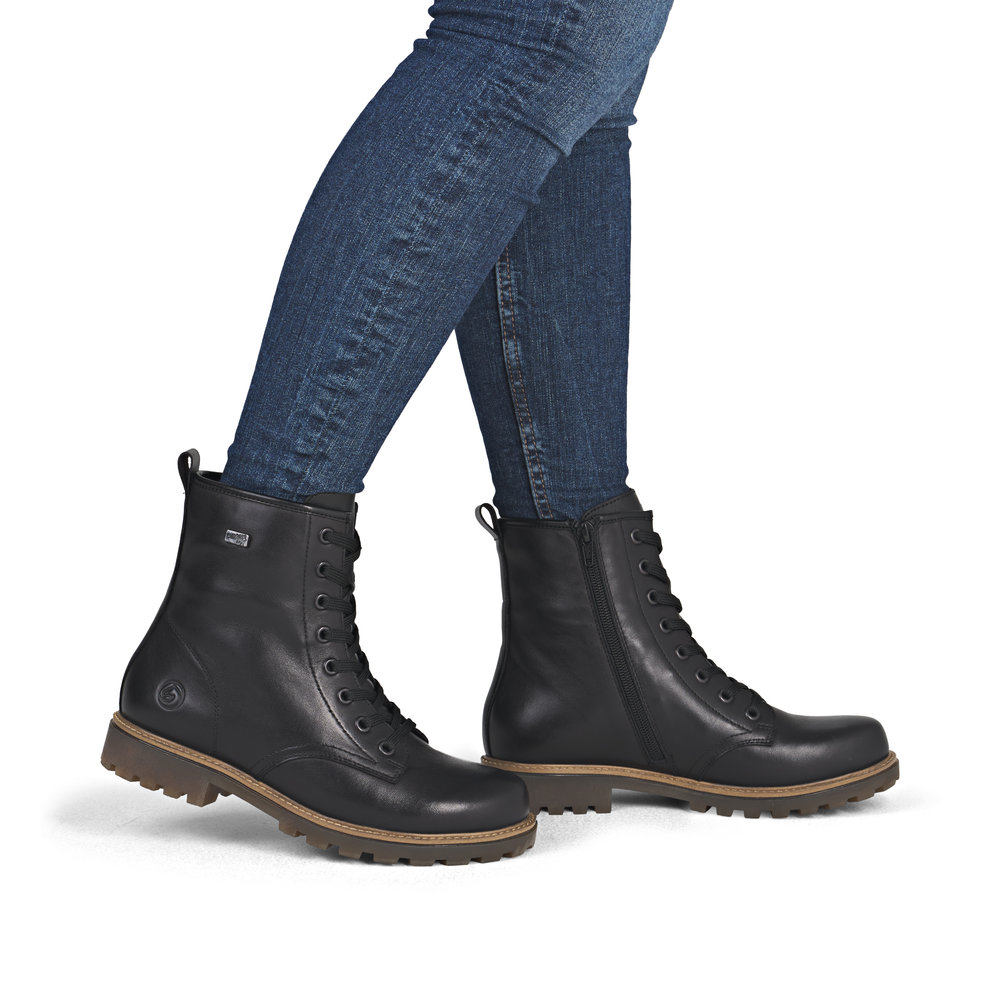Un design moderne et confortable ! Ces bottines Remonte à lacets en cuir lisse sont un véritable accroche-regard ! L'association astucieuse du laçage et de la fermeture éclair garantit un ajustement parfait et un maintien optimal. Une semelle adhérente et amortissante, ainsi qu'une semelle intérieure rembourrée et amovible, sont autant d'atouts de ce modèle. Grâce à sa largeur confortable, l'avant-pied est suffisamment spacieux. La membrane RemonteTEX protège de l'humidité et du vent. La doublure en microvelours est légère et respirante pour un confort optimal tout au long de la journée. C'est là que la bonne humeur entre en jeu !