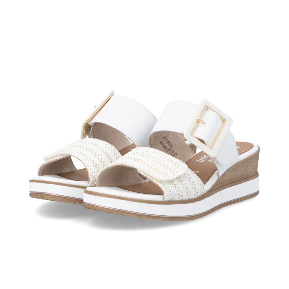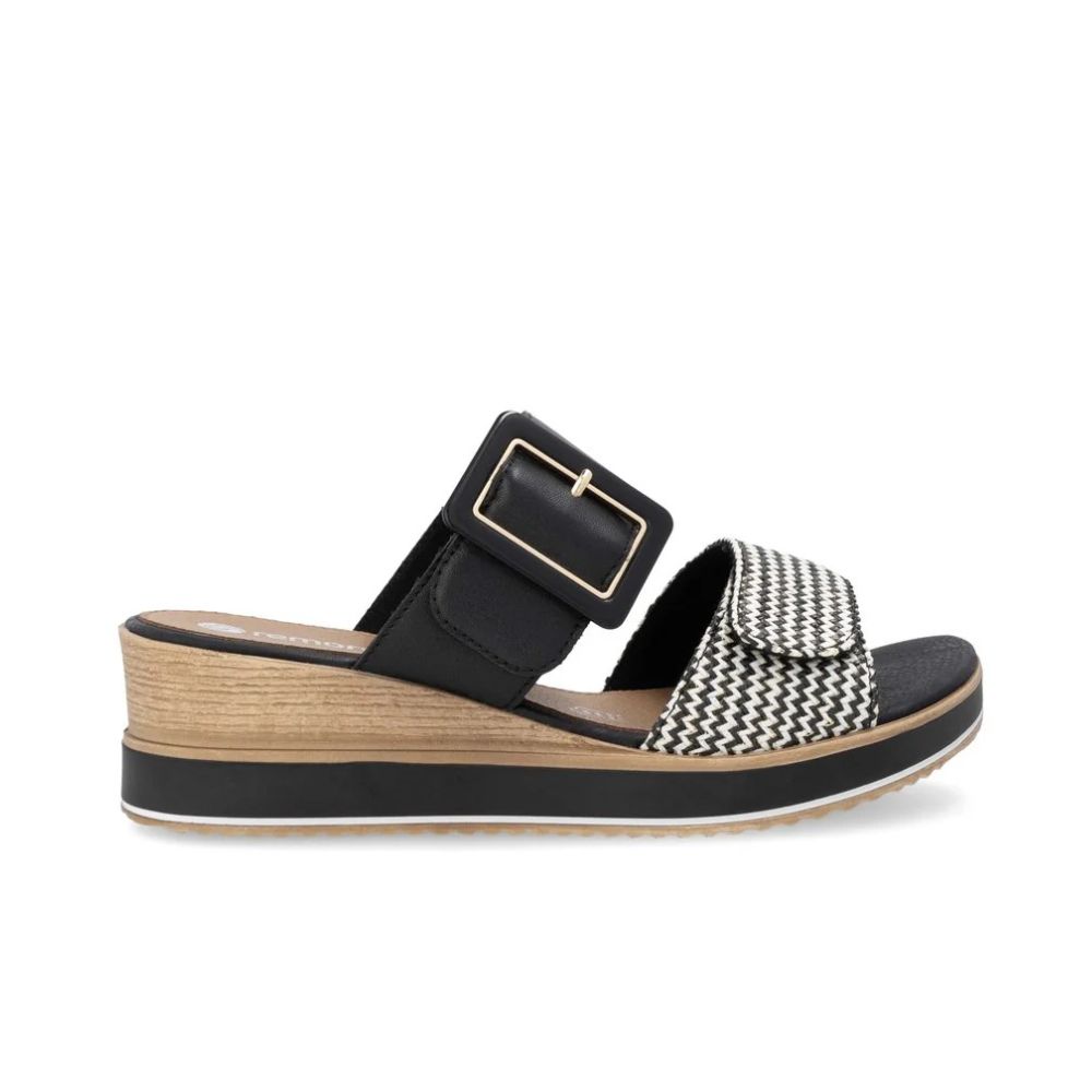 Faites place au soleil ! Rayonnez de bonheur avec ces mules Remonte en cuir lisse. Une double fermeture auto-agrippante permet de les enfiler facilement et rapidement. La boucle tendance apporte une touche d'élégance. La semelle intérieure souple et légère, dotée d'un talon compensé, et le confort optimal sont assurés par un amorti exceptionnel. Ces mules vous promettent un look irrésistible.