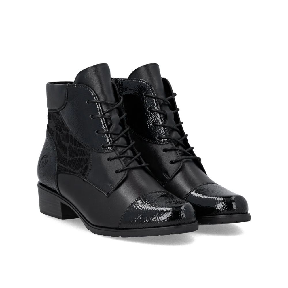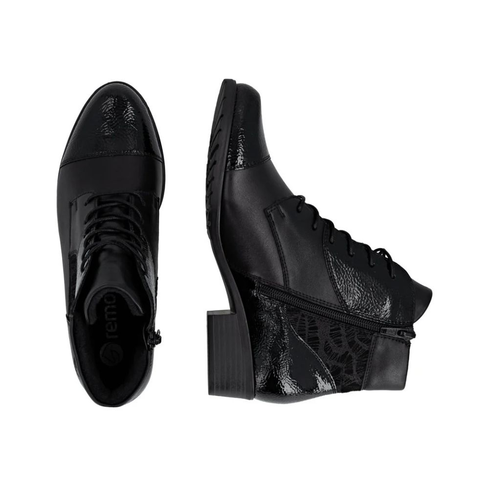 Un confort maximal à chaque pas ! Ces bottines noires Remonte ont le chic pour vous. L'association astucieuse du laçage et de la fermeture éclair garantit un ajustement parfait et un maintien optimal. Une semelle amortissante et adhérente, ainsi qu'une semelle intérieure amovible, sont autant d'atouts de ces bottines. Difficile de faire plus stylé !