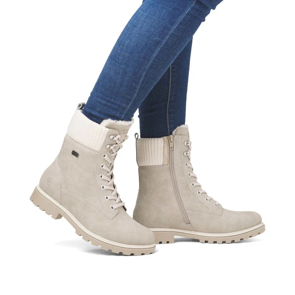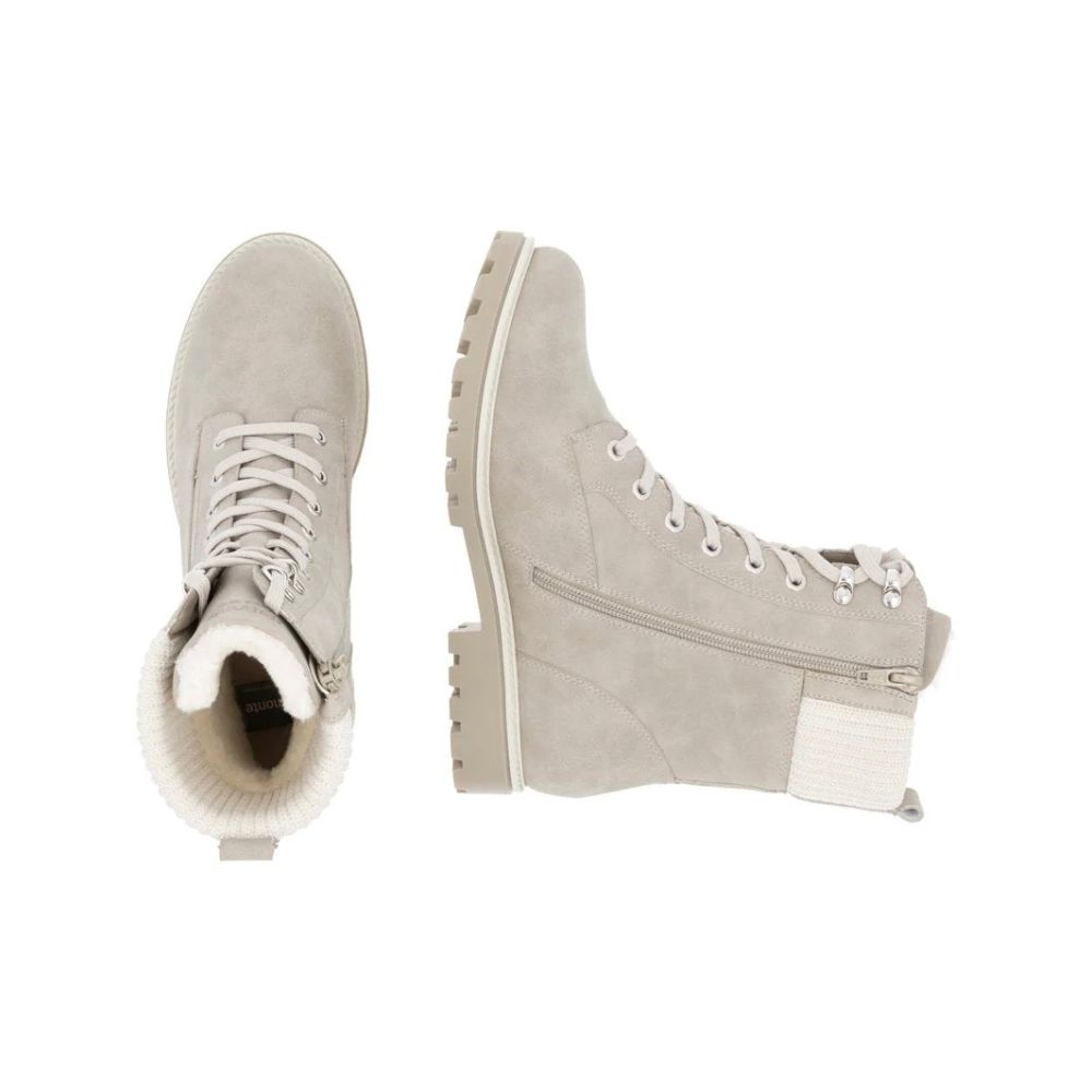 Faites place nette ! Ces bottines à lacets Remonte gris-beige en cuir suédé offrent tout le confort nécessaire. Malgré le laçage, la fermeture éclair est facile à fermer. Le col de la tige en maille apporte une finition parfaite et un look original. La semelle amortissante et adhérente, avec son talon bloc, offre une excellente adhérence pour une foulée sûre. Grâce à sa largeur confortable, la chaussure offre non seulement suffisamment d'espace à l'avant-pied, mais est également disponible en grandes pointures. La surface déperlante offre une protection optimale contre les intempéries et la semelle intérieure thermique protège du froid. La laine vierge, douillette et très chaude, garde les pieds au chaud par temps froid.