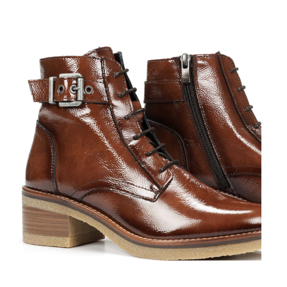 Parmi la gamme Lucero, nous soulignons sa semelle caractéristique en crêpe qui lui confère caractère et distinction. Son talon haut est idéal pour s'associer à vos tenues du quotidien. Grâce à sa fermeture éclair latérale ou élastique, elle facilite l'enfilage et l'ajustement au pied.