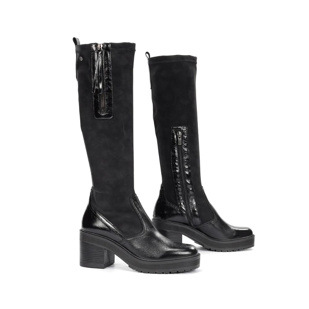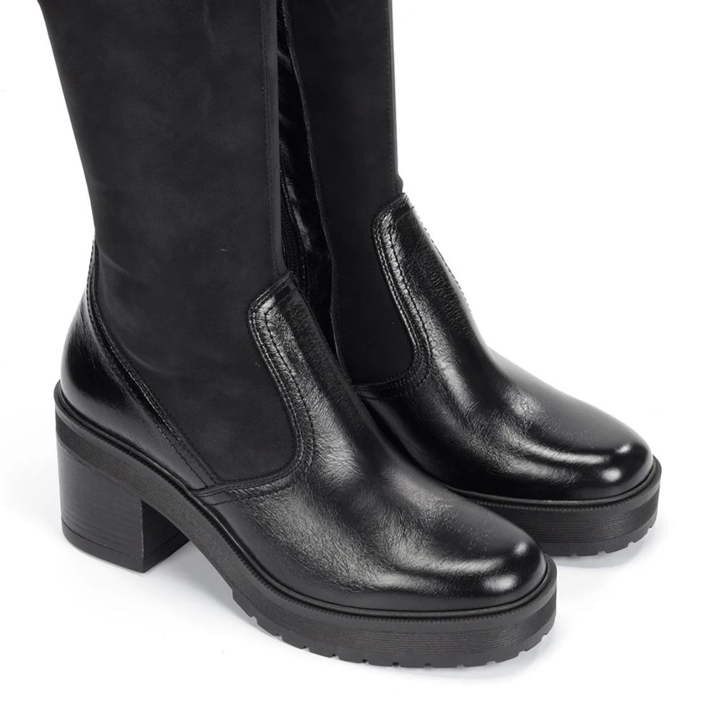 Sarah, votre botte tout-terrain. Cette botte à talon épais est dotée d'une fermeture éclair latérale noire et d'une languette à l'arrière pour un enfilage facile. Semelle en caoutchouc compensée antidérapante. Idéale pour un style décontracté ou habillé, alliant confort et durabilité.