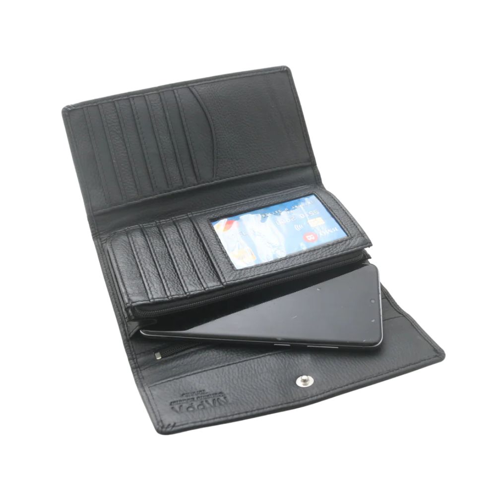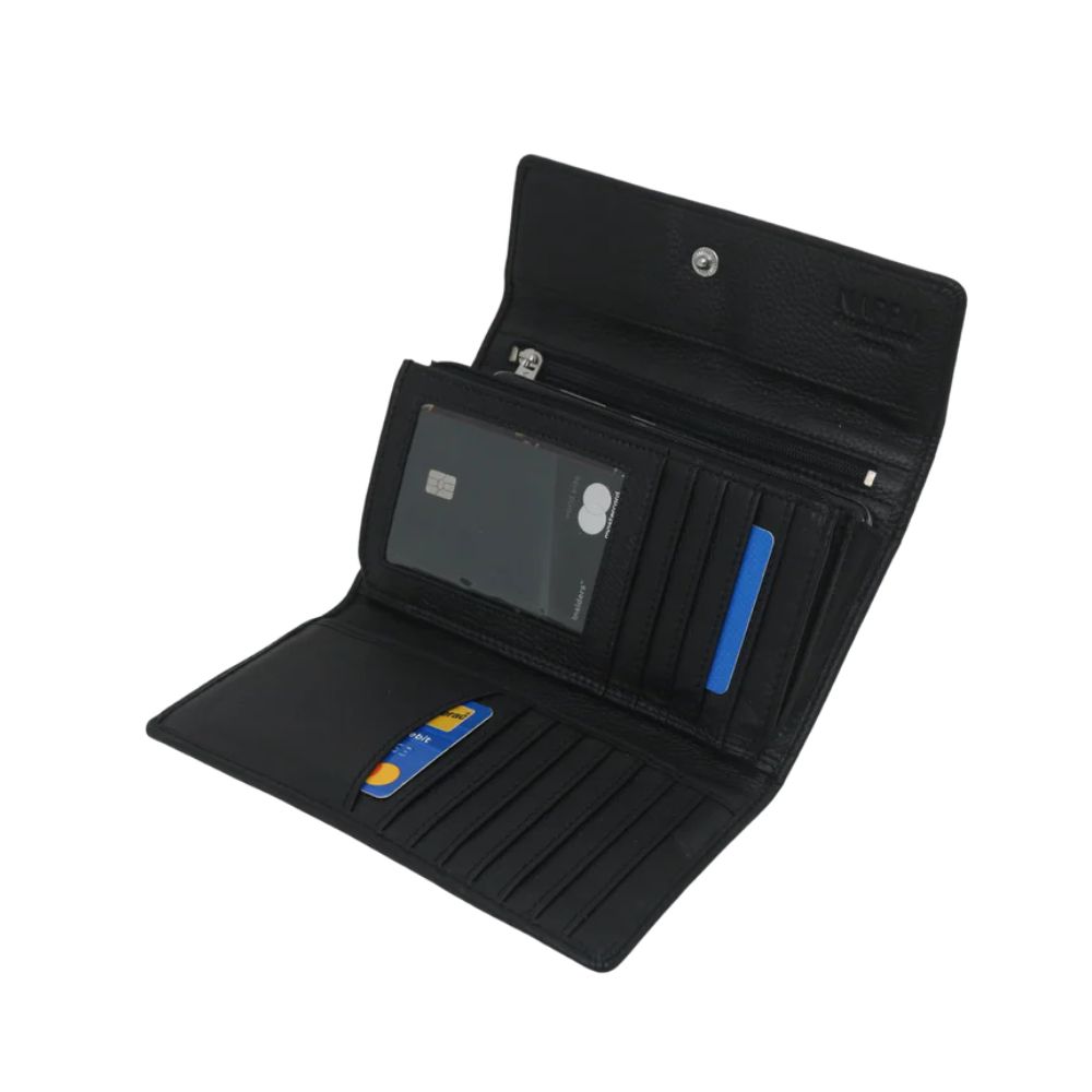 12 emplacements pour cartes de crédit et une fenêtre pour carte d'identité