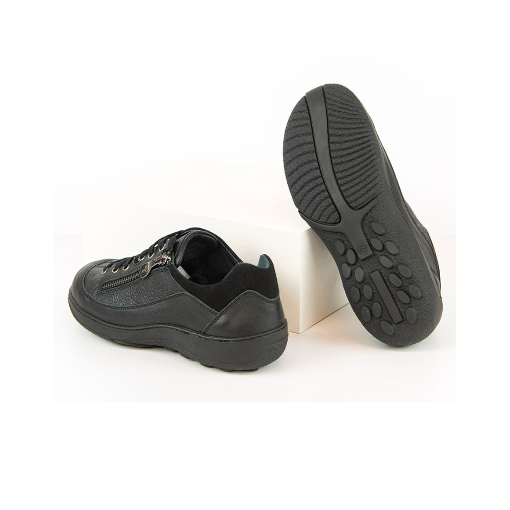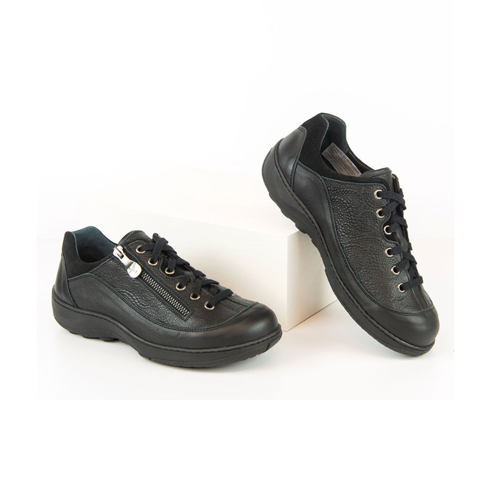Ce soulier pour femme est ajustable jusqu’au bout du pied. Il comporte une empeigne et une doublure de cuir stretch ainsi qu’une semelle amovible qui vous permet d'insérer vos orthèses plantaires et/ou tibiales.