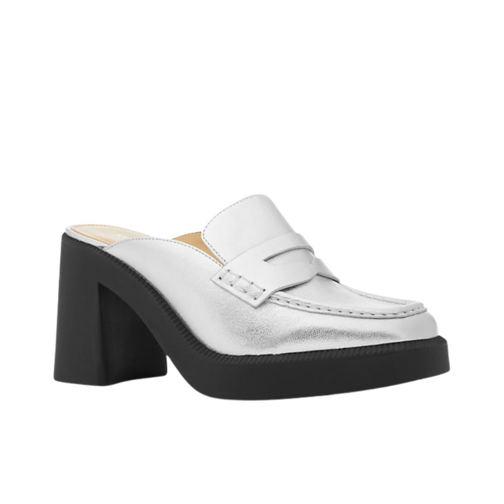 Conçue pour vous accompagner du bureau à l’apéritif, la très convoitée mule Eden est dotée d’une plateforme compensée spectaculaire pour créer une alternative branchée et élégante au flâneur traditionnel. Confectionnée en cuir métallisé, cette silhouette à bout en amande présente des surpiqûres classiques ainsi qu’une fente pour un attrait intemporel. Le gros talon signifie qu’elle se portera parfaitement avec un jean ample et une mini jupe.