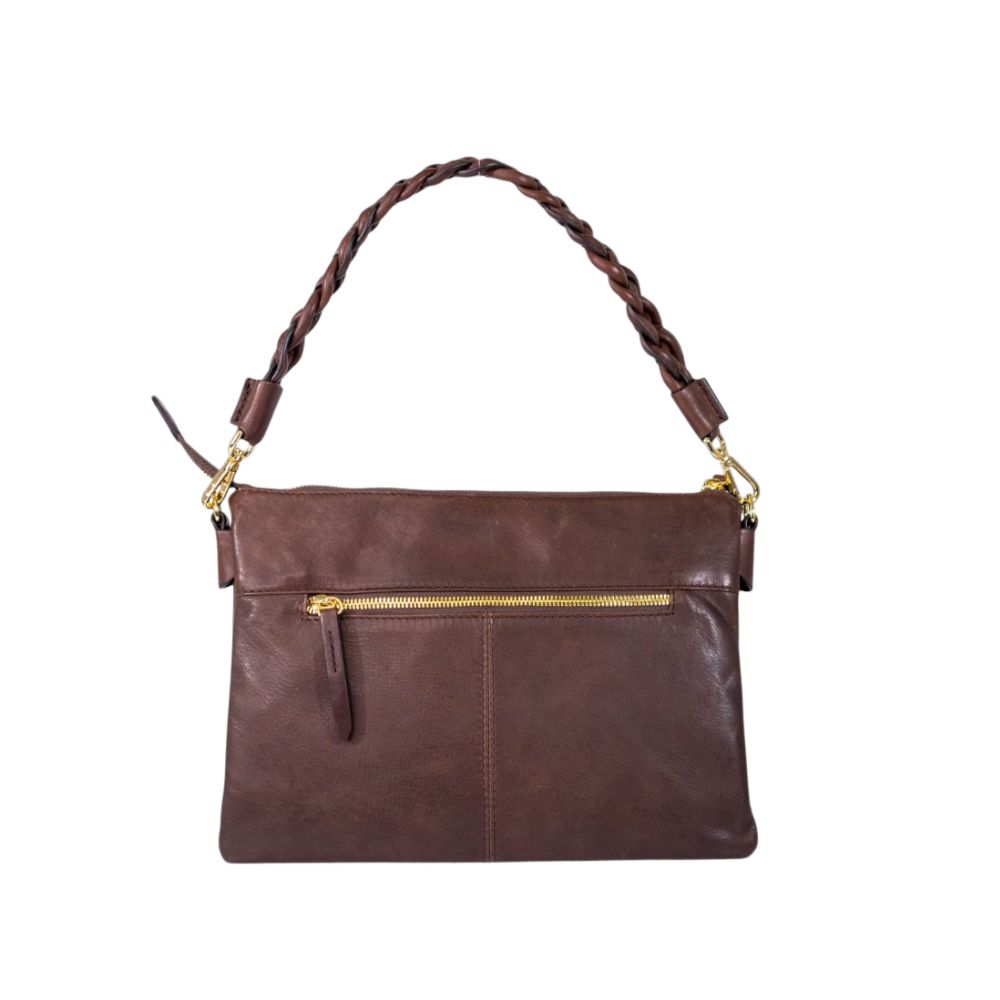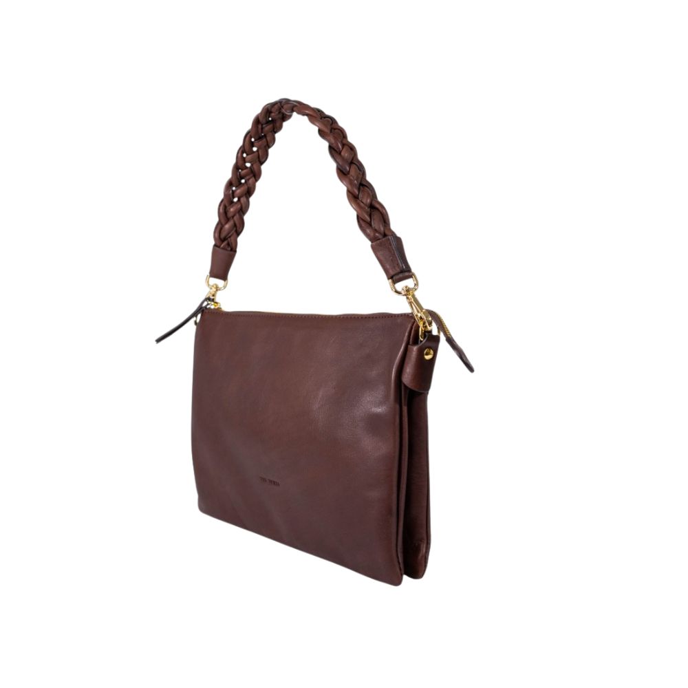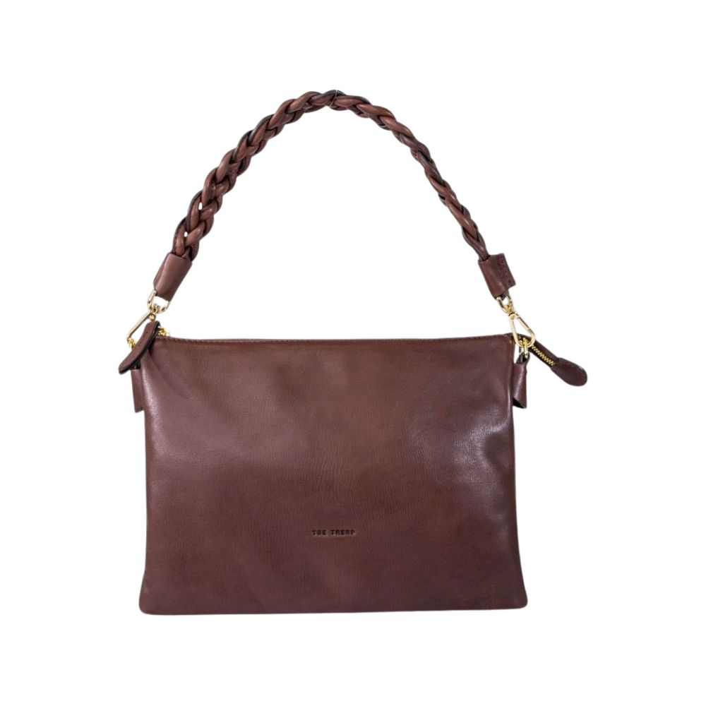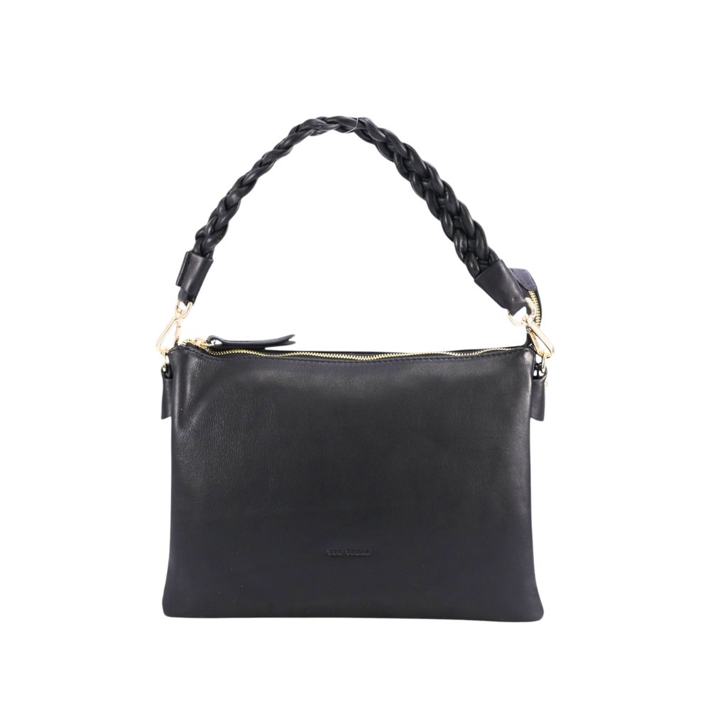 Sac à main en cuir de la marque The Trend. Élégant et intemporel, il se distingue par sa poignée tressée et ses détails métalliques dorés. Doté d’une fermeture éclair sur le dessus, il est pratique et idéal pour transporter les essentiels du quotidien avec style.