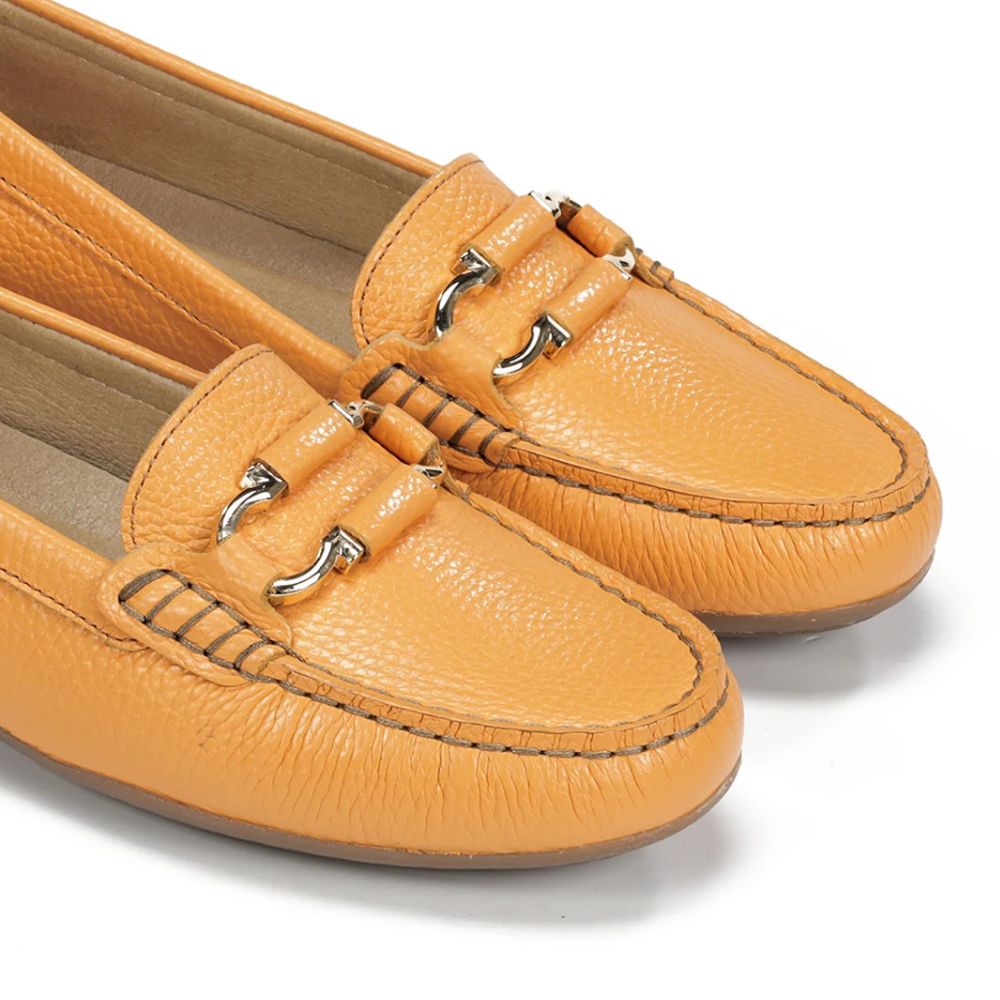 Fluchos réinvente le mocassin classique avec une touche féminine et moderne. Confectionné en cuir de haute qualité, il allie élégance et confort à chaque pas. Le détail décoratif sur le devant apporte une note distinctive qui sublime toutes les tenues. Un modèle polyvalent et intemporel, conçu pour les femmes qui privilégient le style sans sacrifier le confort tout au long de la journée.