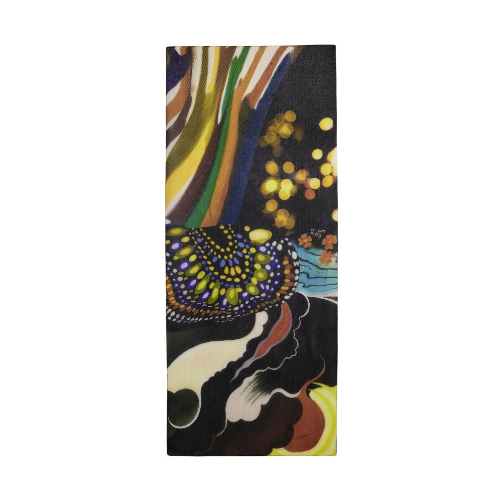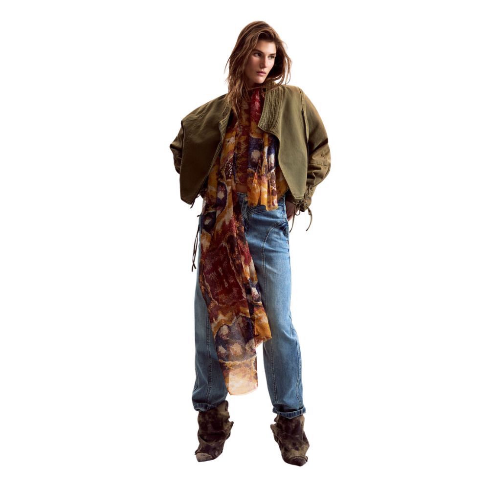 Ce foulard combine style graphique et confort, apportant une touche moderne et colorée à vos looks.