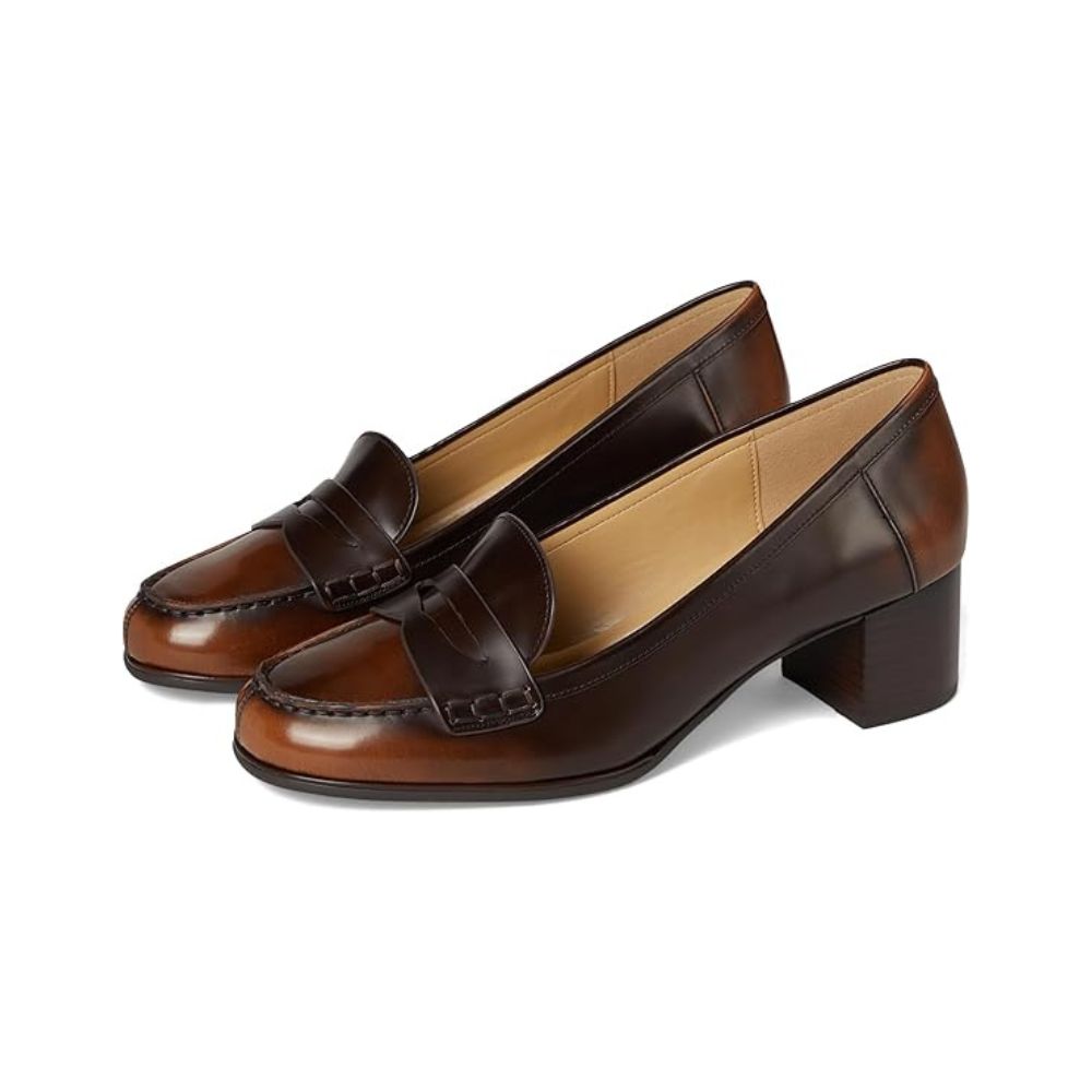 Mocassins Penny sur mesure sur un talon empilé confortable, incarnant le style et la sensibilité, donnant à tout, du denim aux robes, un élément de patrimoine chic.