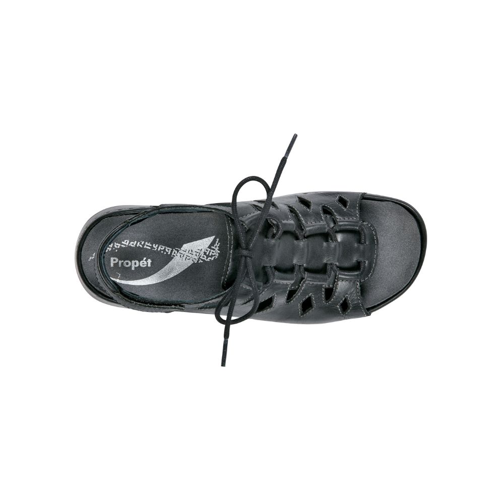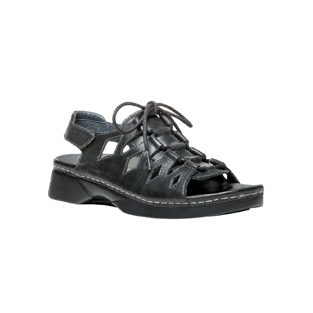 Les sandales Ghillie Walker de la marque Propét sont conçues pour offrir un confort supérieur tout au long de la journée. Leur tige en cuir pleine fleur souple, associée à une doublure en cuir, procure une sensation agréable et un maintien optimal du pied. Le laçage de style Ghillie, combiné à une bride arrière auto-agrippante réglable, permet un ajustement précis et personnalisé.