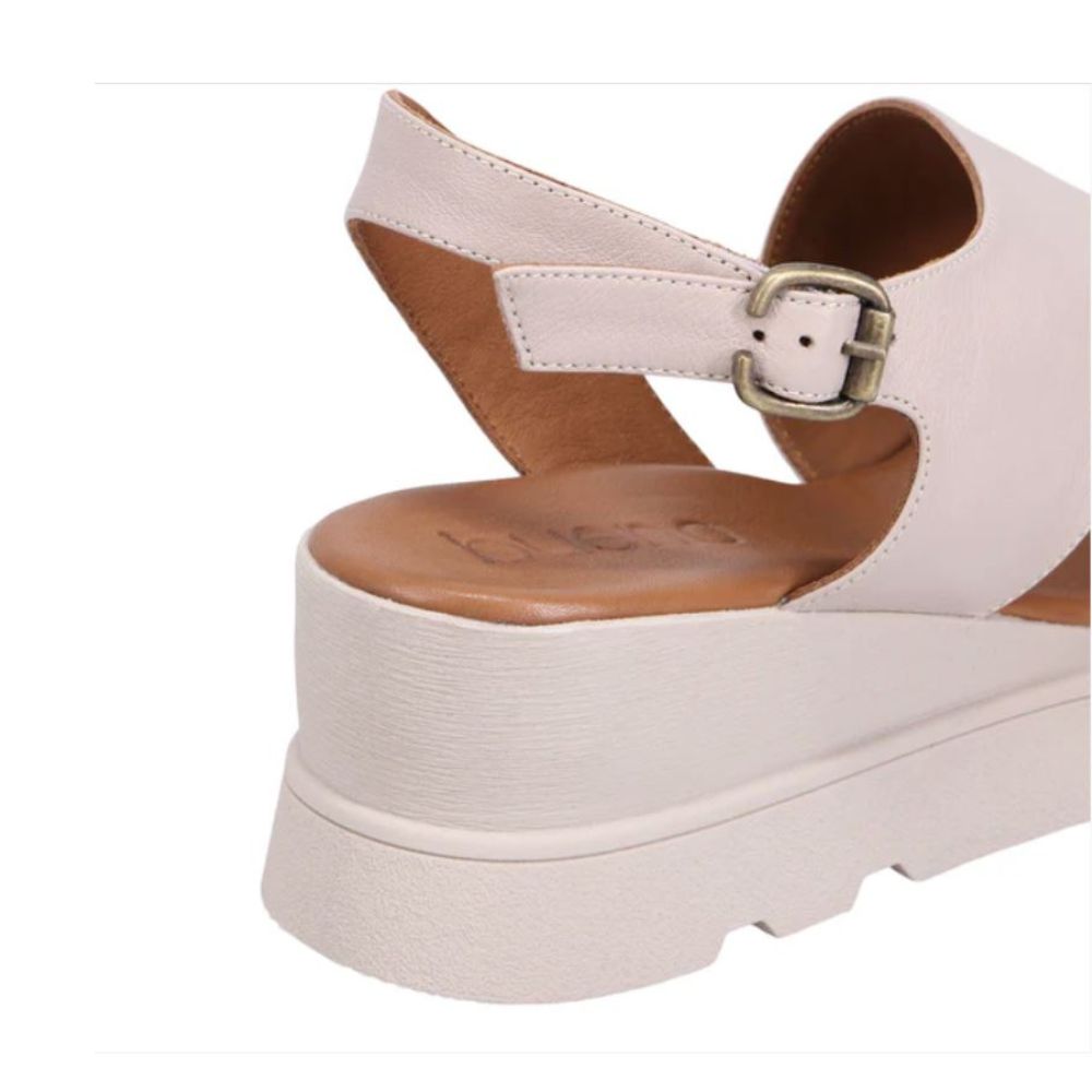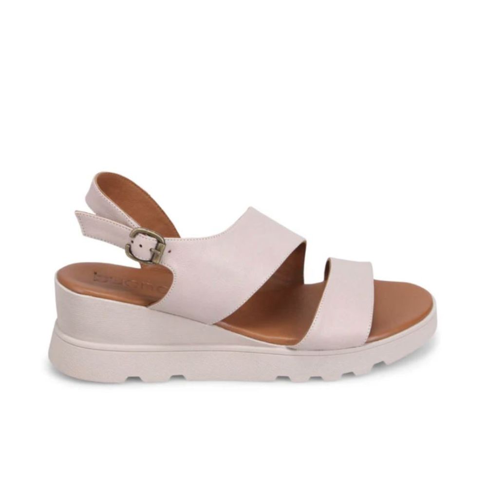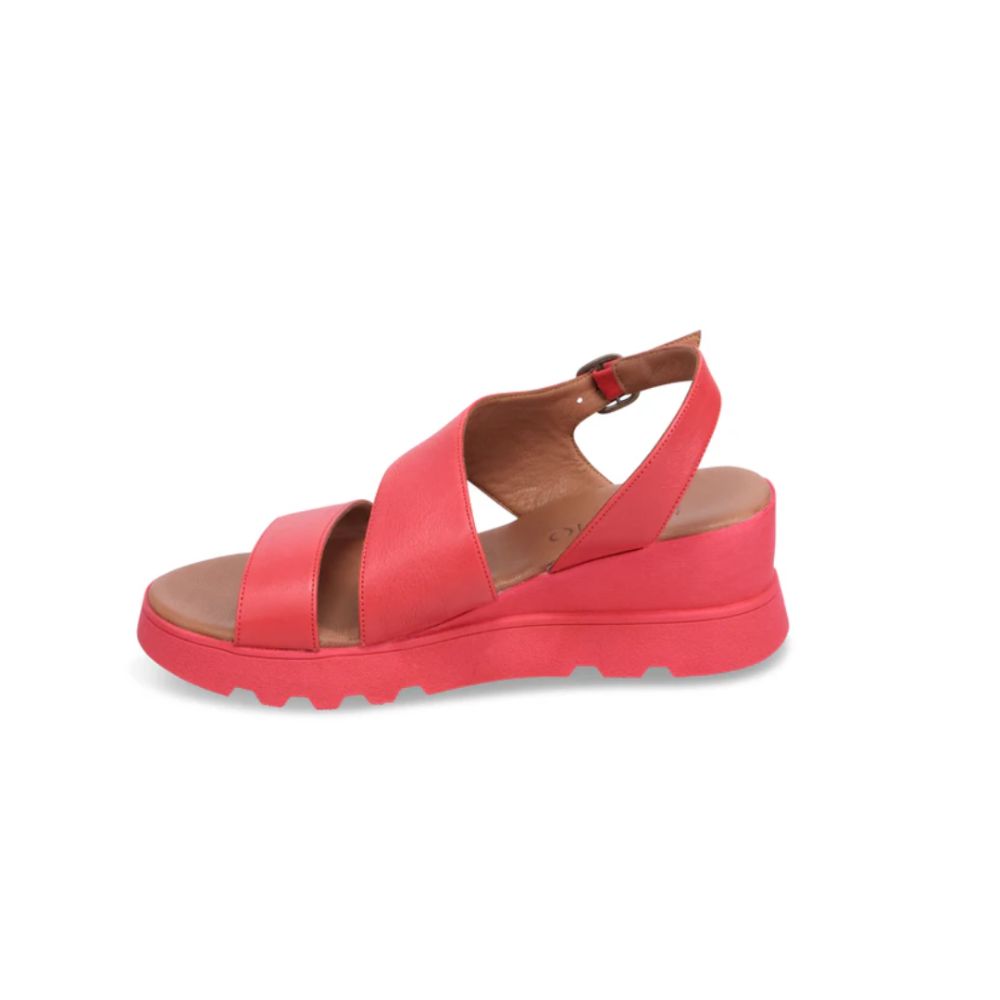 La sandale Gianna présente des brides asymétriques incurvées qui se terminent par une bride arrière ajustable. Sa semelle compensée épaisse, ornée de profondes rainures, lui confère un style urbain affirmé.