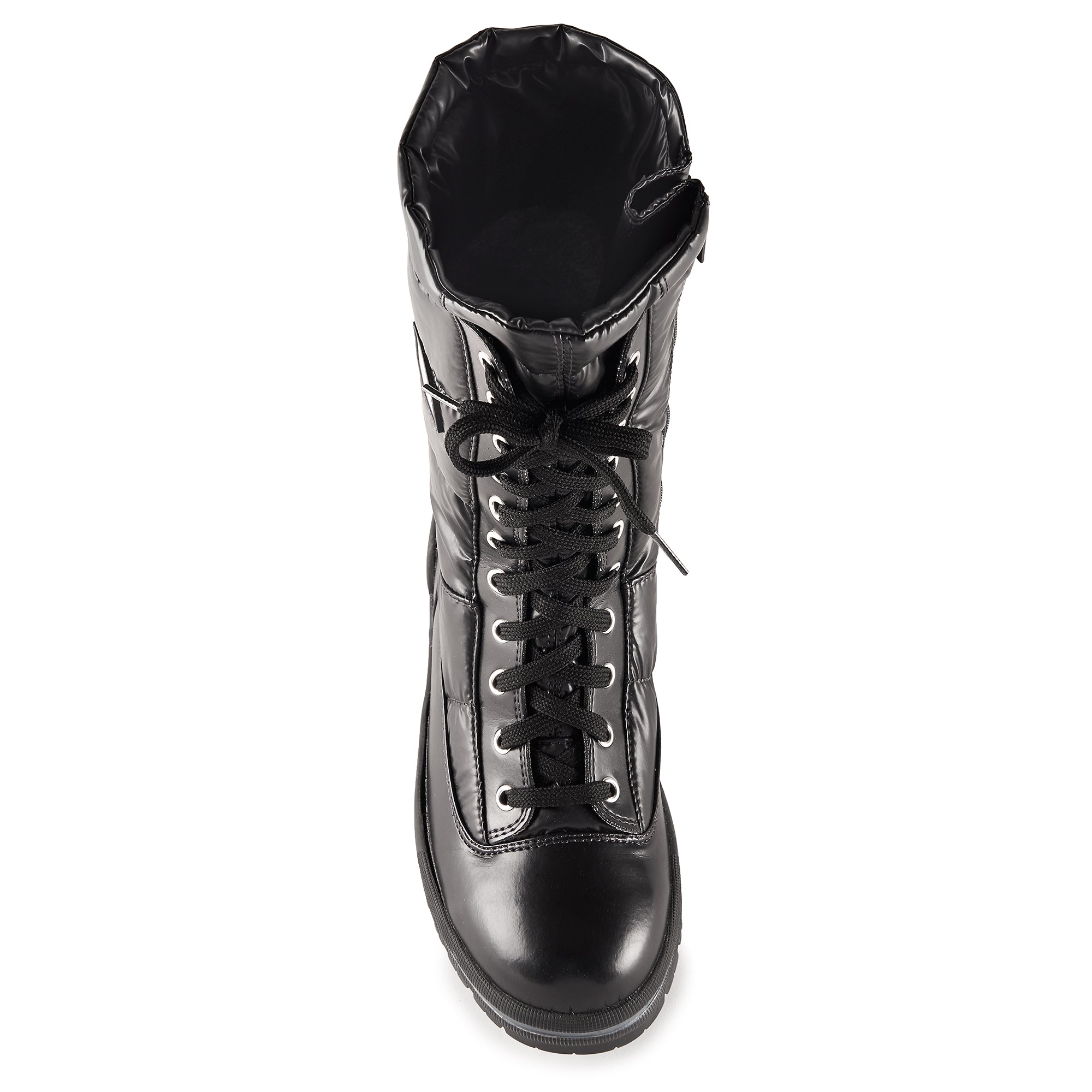 Démarquez-vous avec un style urbain ultra tendance avec notre modèle populaire Glamour. Fait à partir de matériaux véganes, ce modèle mi-mollet à effet matelassé est façonné d’un extérieur en PU lustré remarquable et d’un laçage pleine longueur pour allonger la jambe et affirmer votre féminité même en hiver.