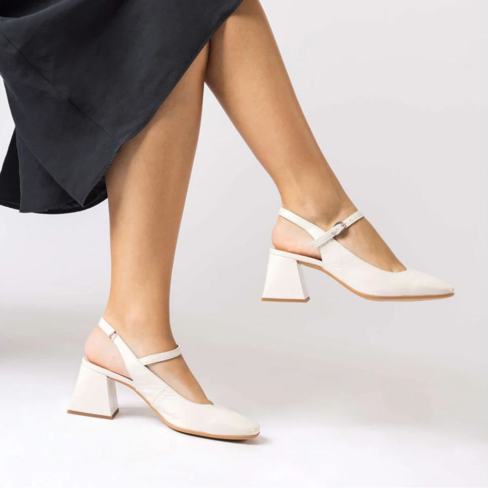 Escarpins Mary Jane à talon slingback. Le modèle Jane possède un bout carré. Grâce à son élastique, le maintien est parfait, et son talon de 6 centimètres offre une hauteur idéale. Profitez d'un confort garanti grâce à la semelle intérieure rembourrée MemoryGel : préparez-vous à une sensation de légèreté et de légèreté !