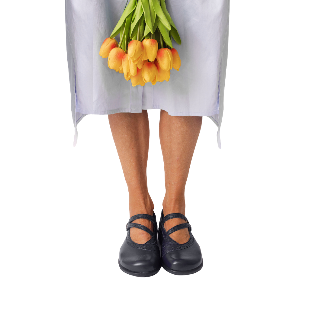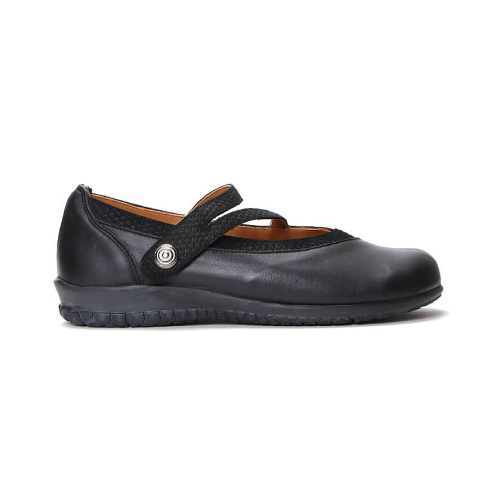 Ce maryjane passe partout est ajustable grâce à sa courroie durable de Velcro. Sa semelle amovible vous permet d’y insérer votre orthèse de manière simple et efficace.