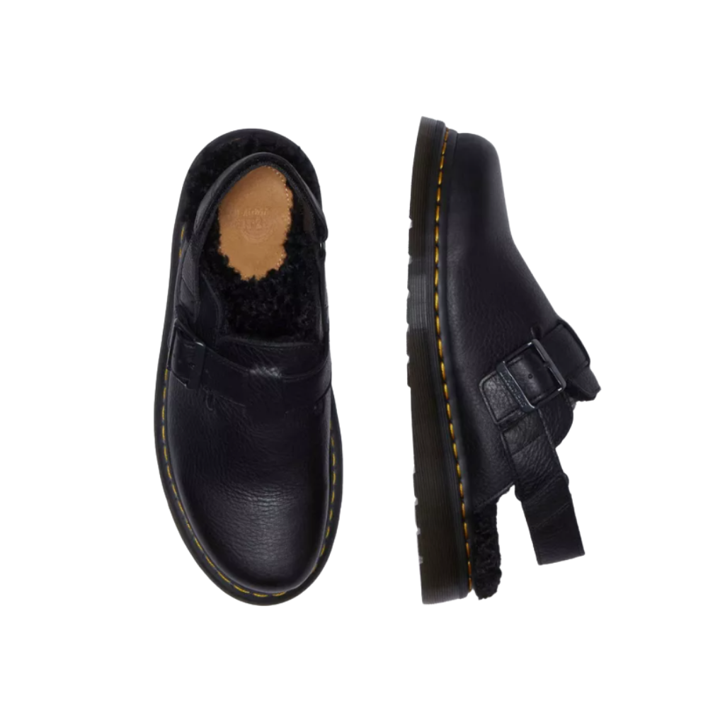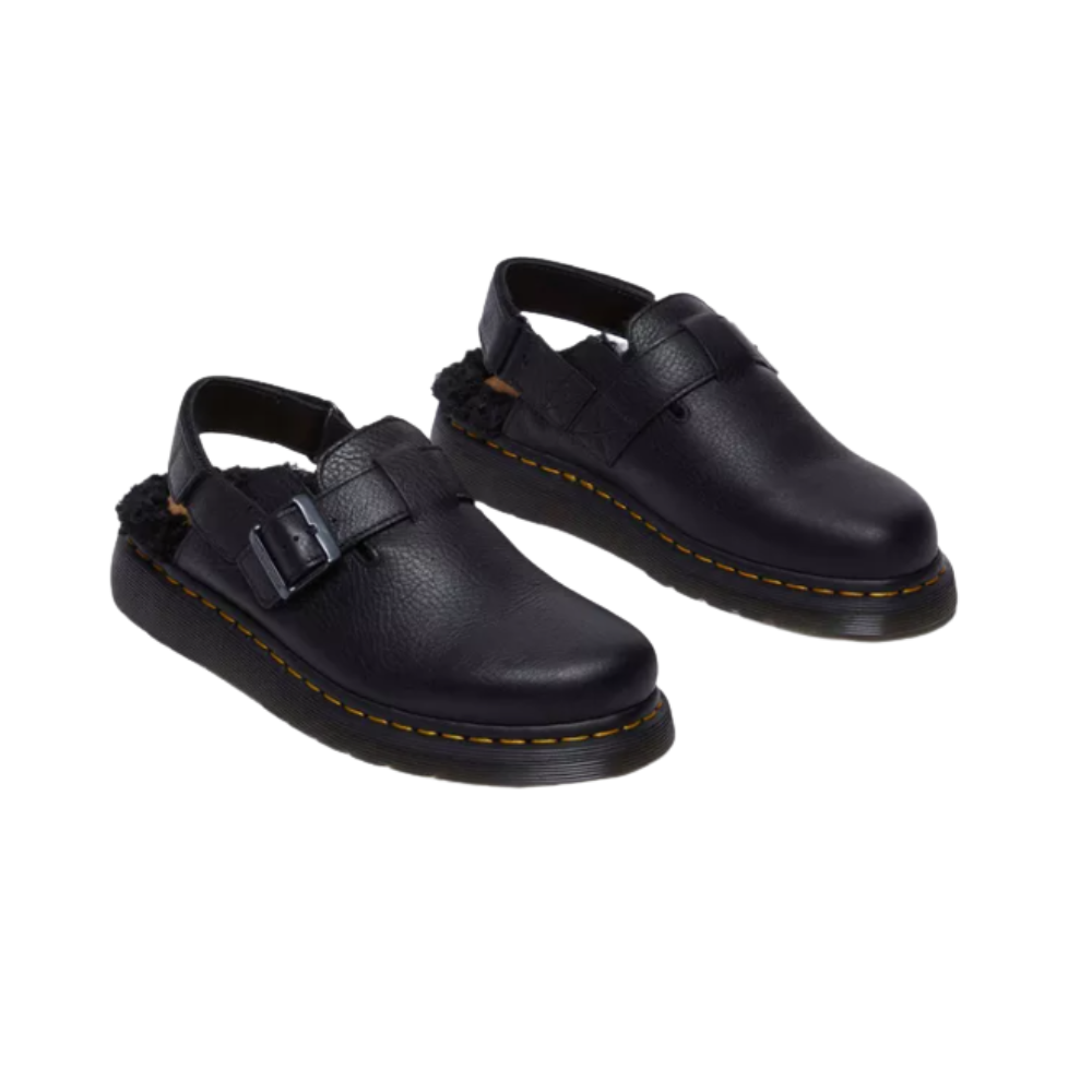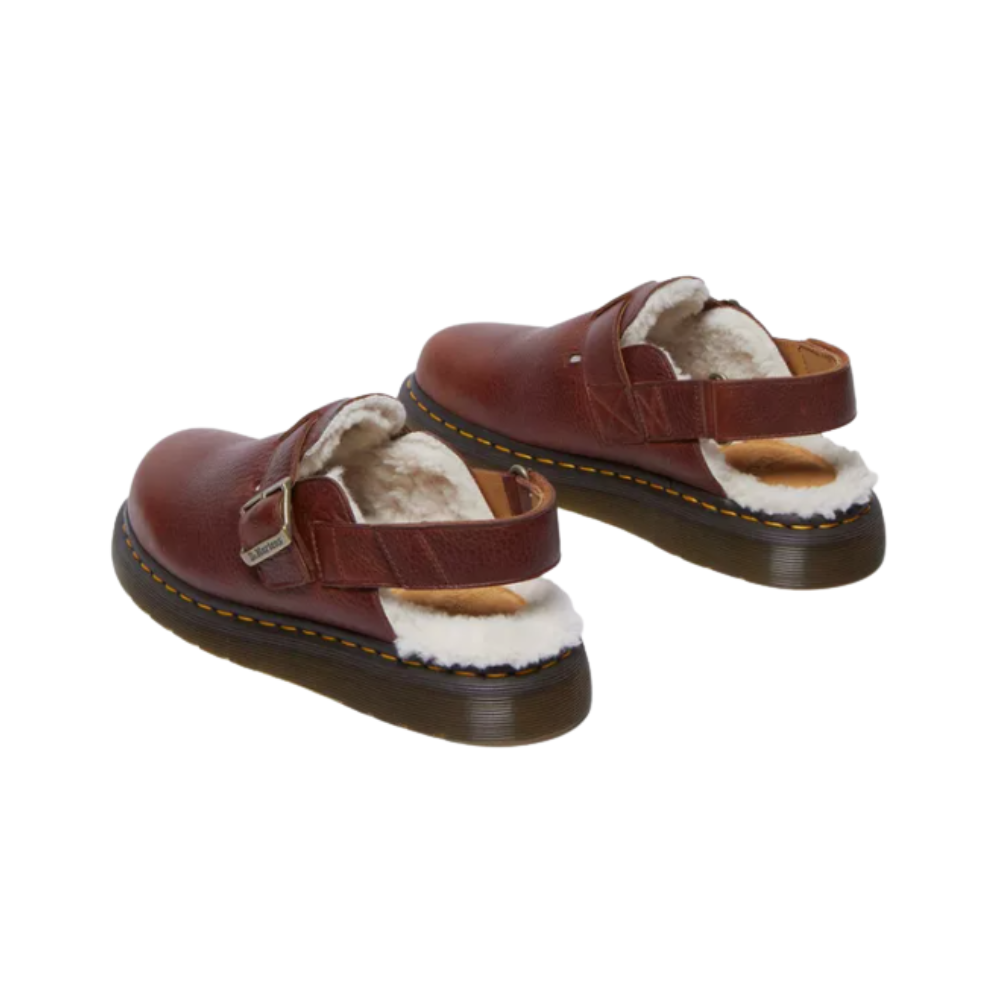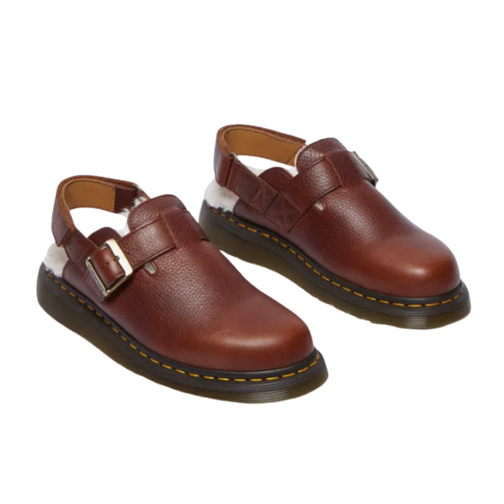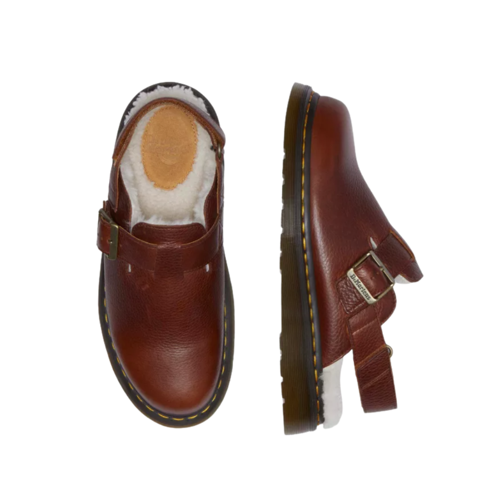 Enfilez-la. Glissez-la. Et partez ! Nous avons repris notre modèle phare Jorge II et y avons ajouté une doublure polaire borg pour la préparer aux mois les plus froids. Mi-chaussure, mi-sandale, cette mule passe-partout est aussi facile à enfiler qu'à porter. Confectionnée en cuir Ambassador robuste, la chaussure Jorge II doublée de fourrure est munie d'une boucle réglable pour un maintien optimal et repose sur une semelle Shore ornée de nos surpiqûres jaunes emblématiques.