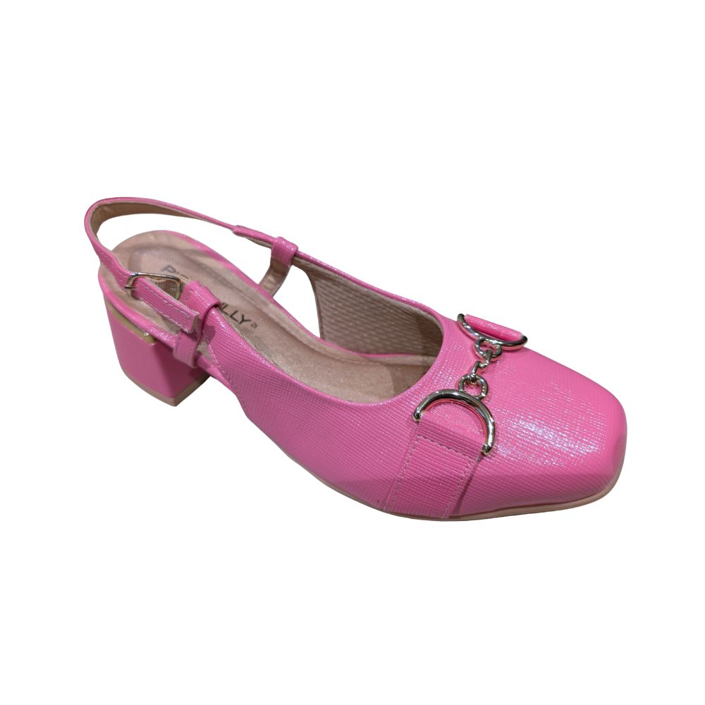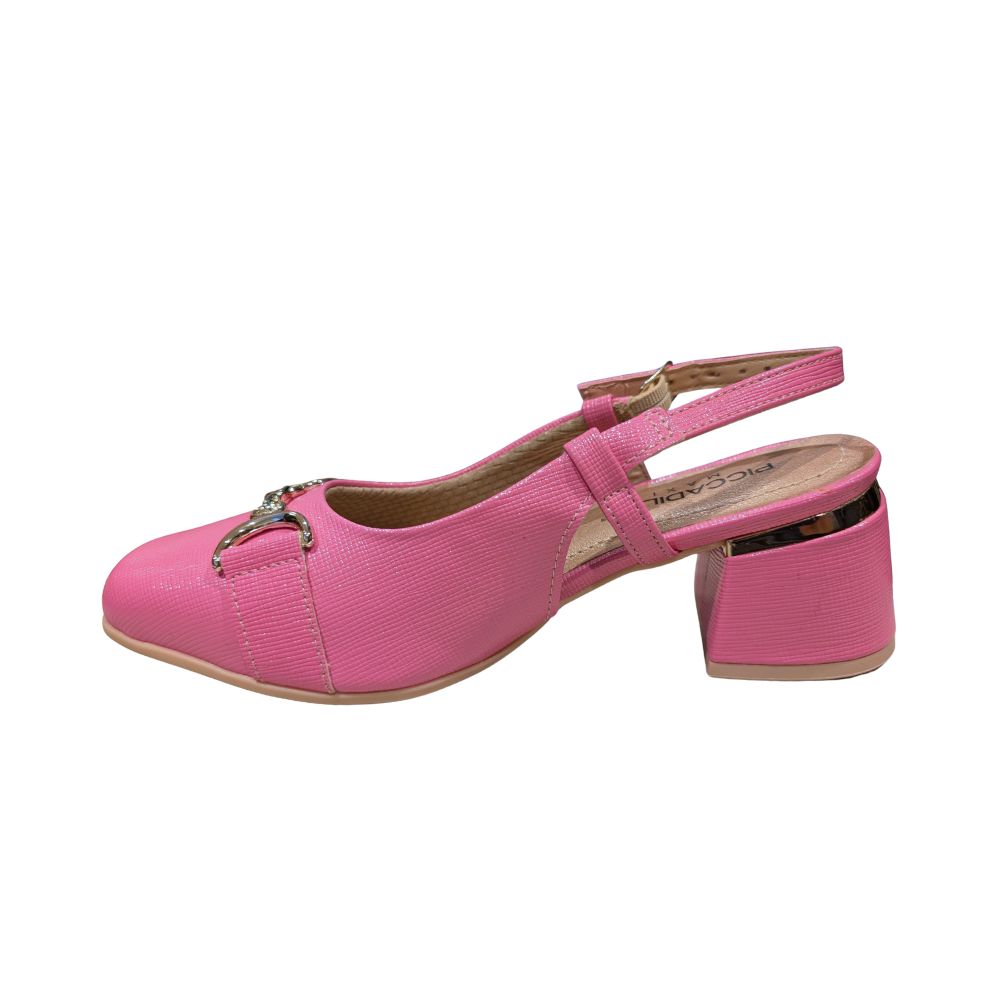 Sandales de la marque Piccadilly, de couleur rose, au style élégant et chic, sublimées par un ornement décoratif en métal au design sophistiqué.