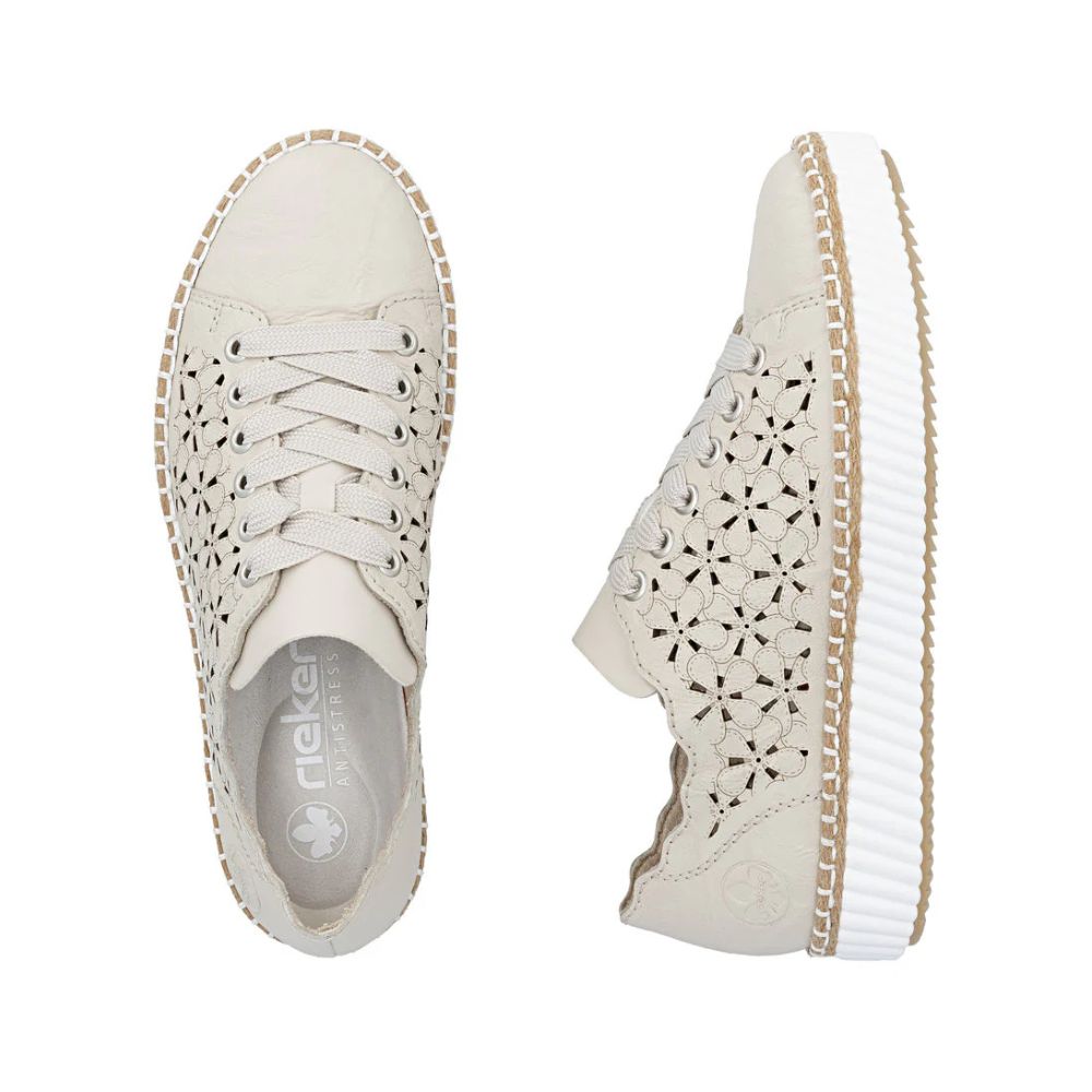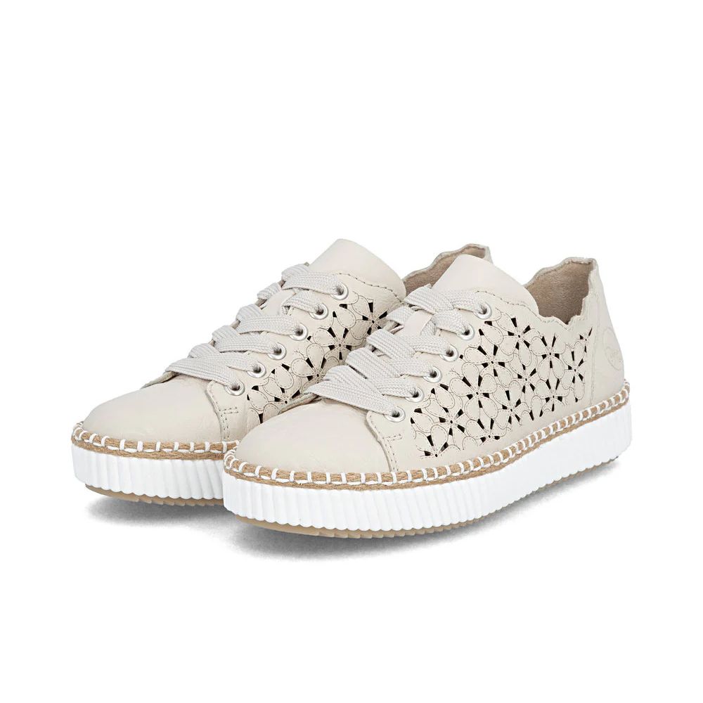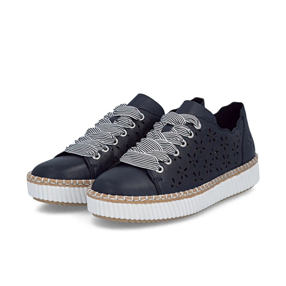 Tout en une ! Ces baskets basses Rieker en cuir lisse allient simplicité et modernité, pour un style toujours impeccable ! Leur construction cousue leur confère une grande robustesse et une semelle particulièrement flexible. Le laçage assure un maintien optimal en toutes circonstances. Les élégantes perforations décoratives attirent tous les regards. La semelle plateforme adhérente garantit une excellente traction. Enfin, la semelle intérieure rembourrée et amovible offre un confort exceptionnel. Tout simplement le top !