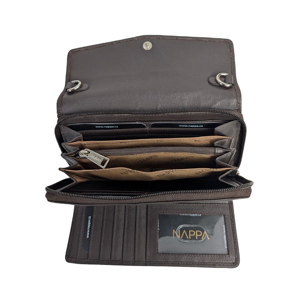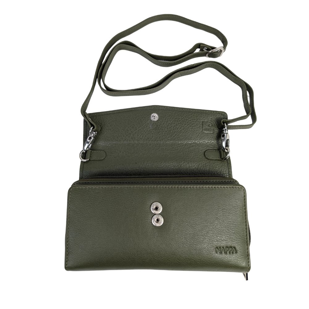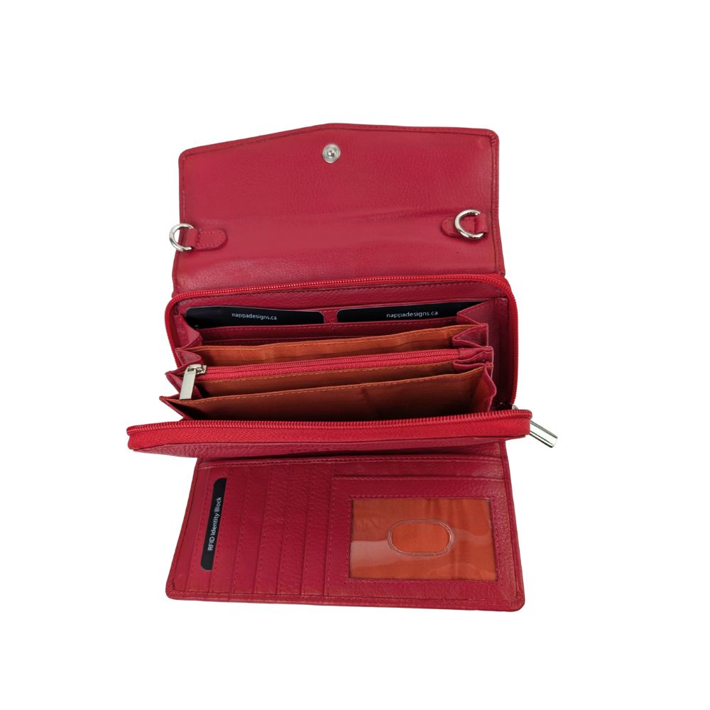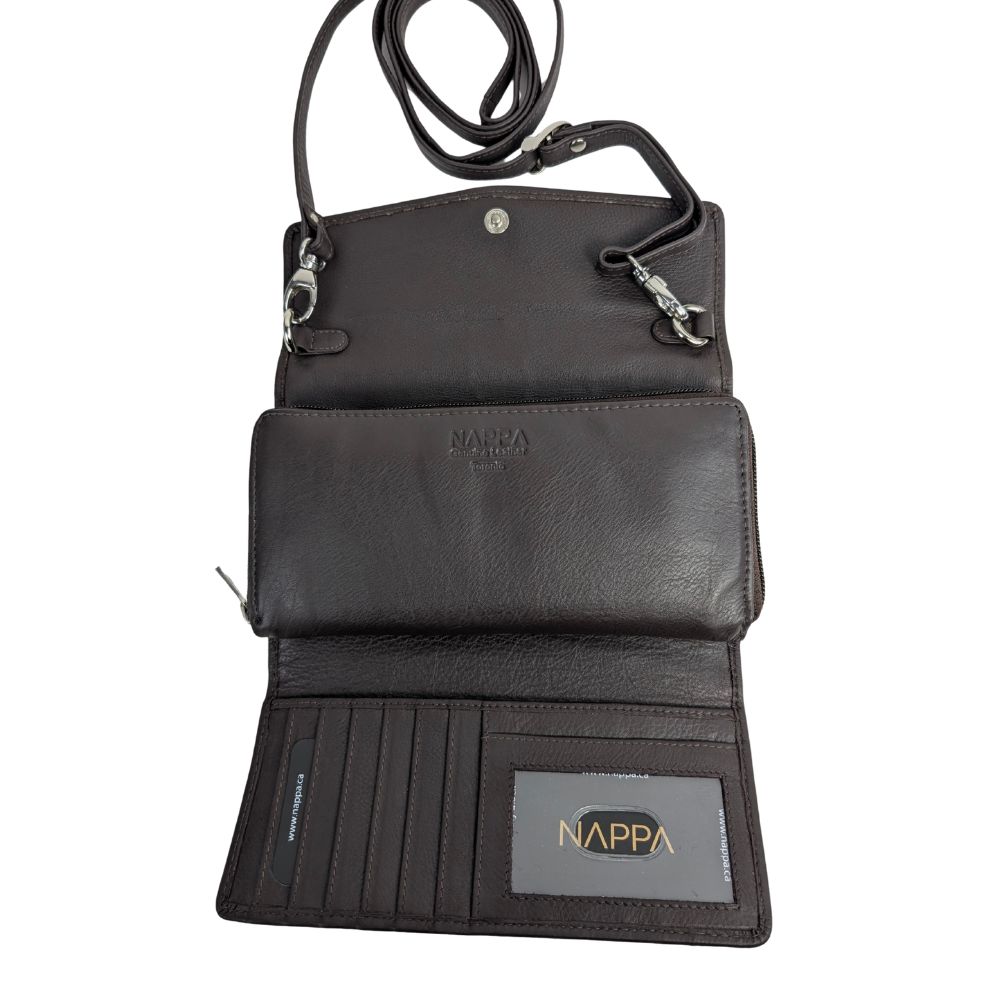 Portefeuille en cuir Nappa modèle Mélanie, un accessoire multifonction à la fois élégant et ingénieux. Il se porte aussi bien comme portefeuille, porte-monnaie ou petit sac en bandoulière grâce à sa ganse pratique. Avec ses compartiments bien pensés, il permet de garder vos essentiels organisés tout en ajoutant une touche chic à votre style.