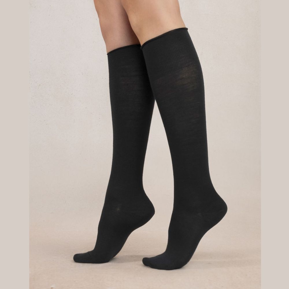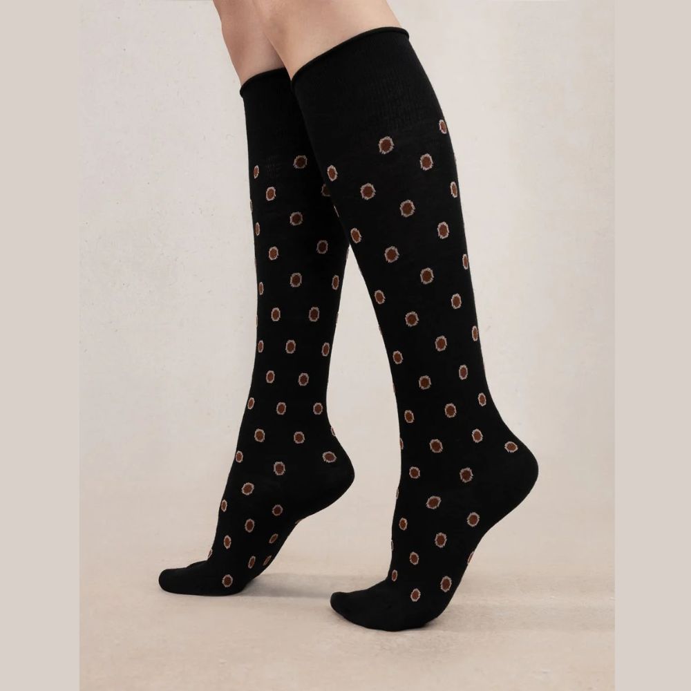 Douces comme du velours, ces chaussettes séduisent par leur motif floral fantaisie résolument tendance. Leur ceinture roulée, particulièrement confortable, ne comprime pas la jambe.