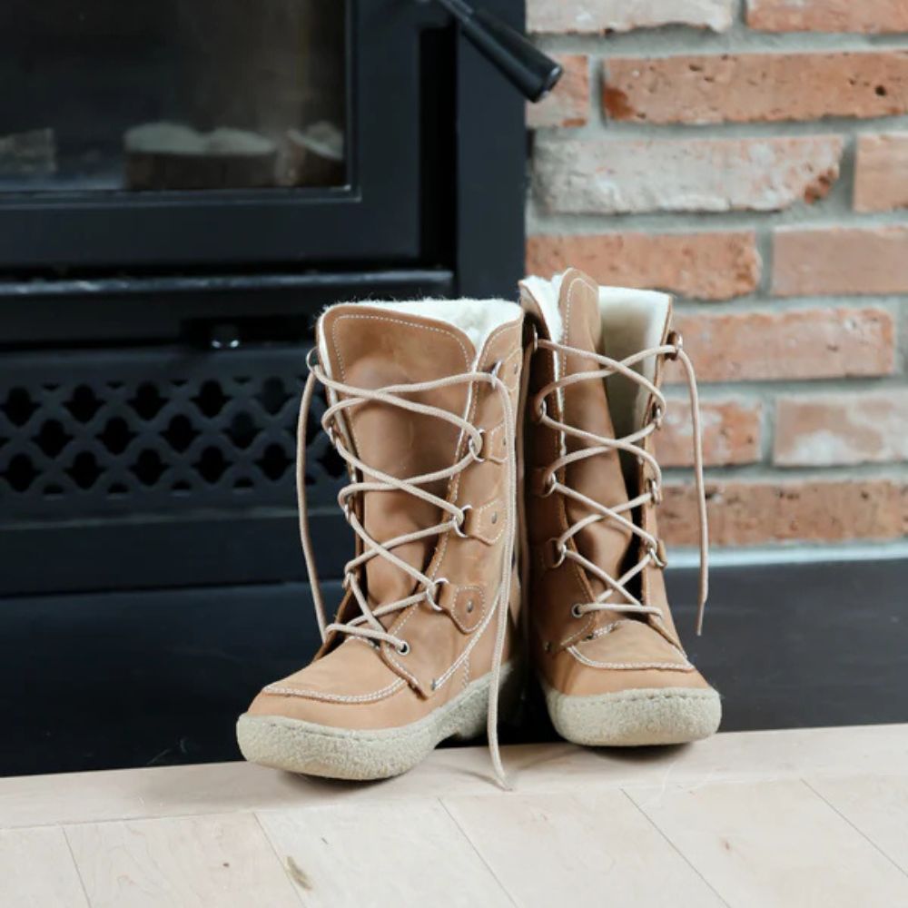 Ces bottes mocassins de femme conçues pour l'hiver sont extrêmement chaudes et confortables. Elles sont fabriquées à la main au Canada avec du cuir véritable. La semelle intérieure et la tige de ces bottes sont doublées à 100% de laine tissée. Cette semelle Wasak est faite de thermoplastique durable avec un léger talon. Veuillez noter que ces bottes mukluks doivent être traitées avec un aérosol imperméabilisant pour l'aider à garder le cuir propre et protégé.