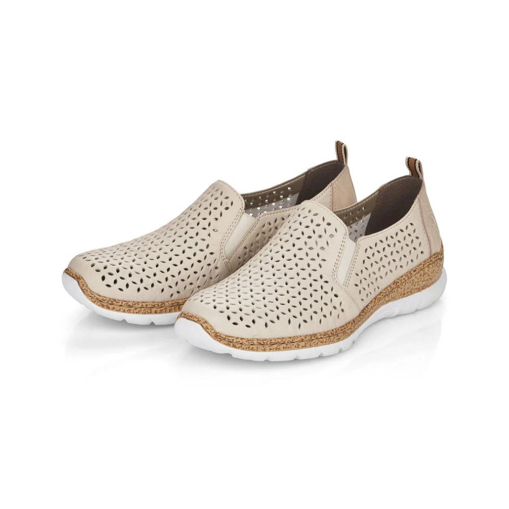 Ces chaussures Rieker en cuir lisse vous accompagnent partout ! Vous ne voudrez plus les quitter. Leur construction cousue-collée leur confère robustesse, souplesse et un confort optimal. Un élastique facilite grandement l'enfilage et le retrait. Grâce à leur semelle compensée légère et amortissante, vos pieds profiteront d'un confort exceptionnel à chaque pas. Autre atout : la semelle intérieure MemoSoft ultra-douce. Le bien-être et l'élégance signés Rieker !