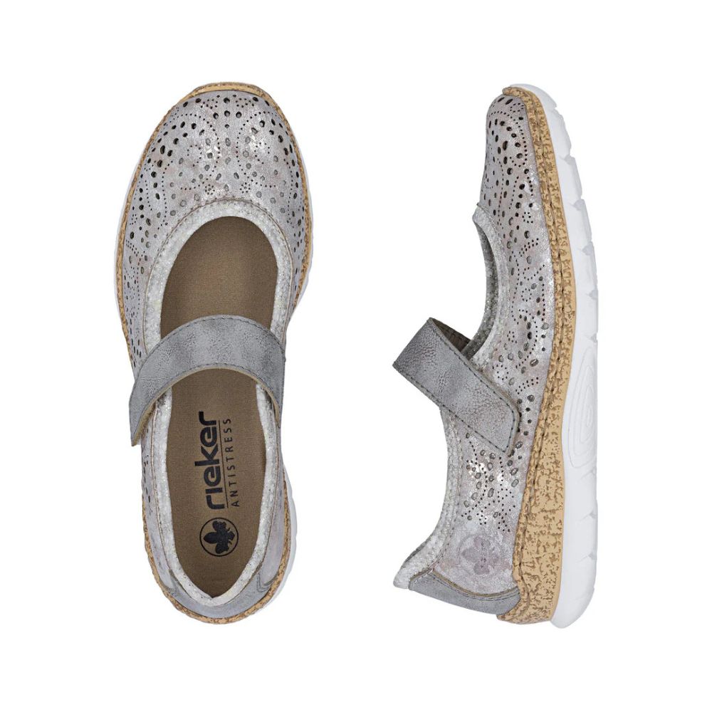 L'alliance parfaite du style et du confort ! Ces chaussures Rieker sont de véritables alliées pour un confort optimal. Leur construction cousue leur confère une grande résistance et une souplesse incomparable. Une fermeture auto-agrippante permet de les enfiler en un clin d'œil. Les élégantes perforations décoratives apportent une touche de style à leur design. Grâce à leur semelle compensée légère et amortissante, vos pieds profiteront d'un confort exceptionnel à chaque pas. De plus, la semelle intérieure MemoSoft ultra-douce offre un confort supplémentaire. Tout ce dont vous rêvez dans une seule chaussure !