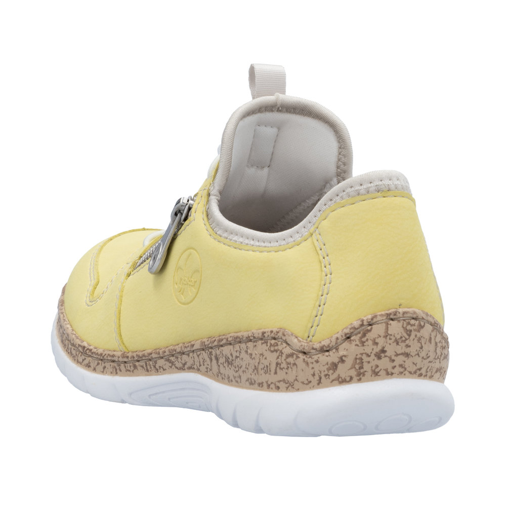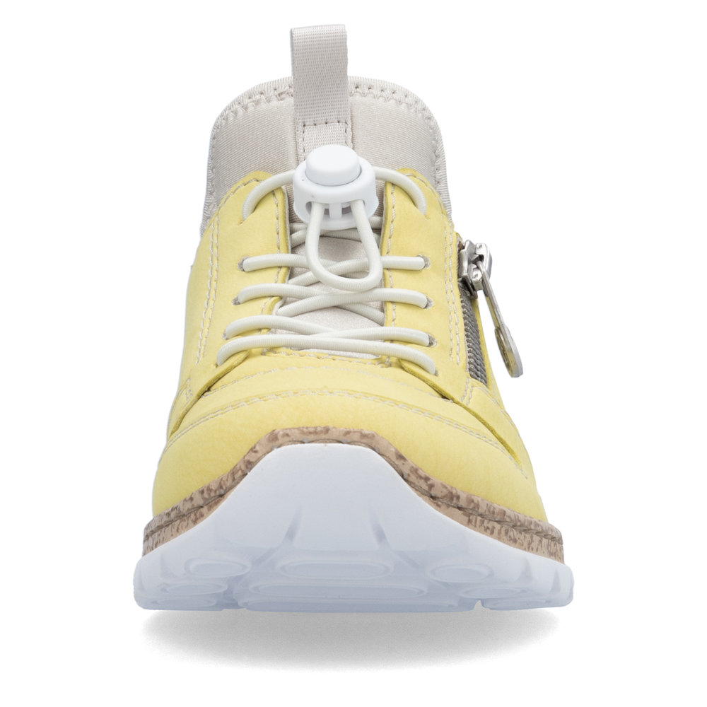 Ces pantoufles jaunes Rieker ont été confectionnées avec soin. Leur couture traditionnelle rend la chaussure particulièrement souple et robuste, assurant un ajustement parfait. Grâce à la bande et au col élastiques, l'enfilage est un jeu d'enfant. La fermeture éclair décorative est un détail élégant. La semelle légère et amortissante à talon compensé offre un confort durable, même lors des longues journées. Un autre atout : la semelle de propreté extra-douce MemoSoft. Une sensation de bien-être tendance dans le style Rieker !