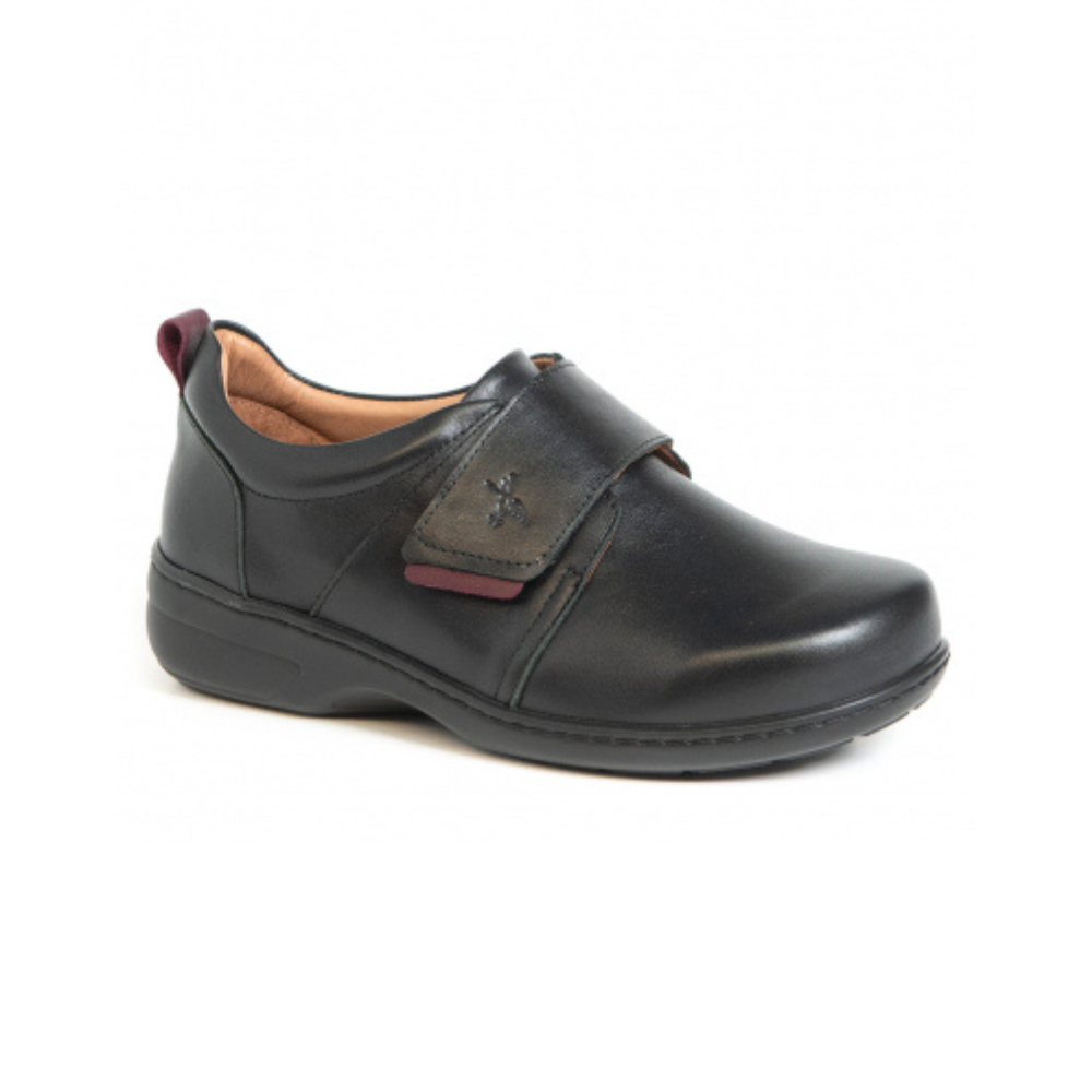 Ce soulier rouge vin est doté d'une tige composée de cuir. La tige présente de jolies nuances plus foncées le long des coutures et au niveau des orteils. La sangle auto-agrippante permet d'enfiler et d'ajuster la chaussure facilement. La semelle extérieure est en polyuréthane. Le talon a une hauteur d'environ 3 centimètres.