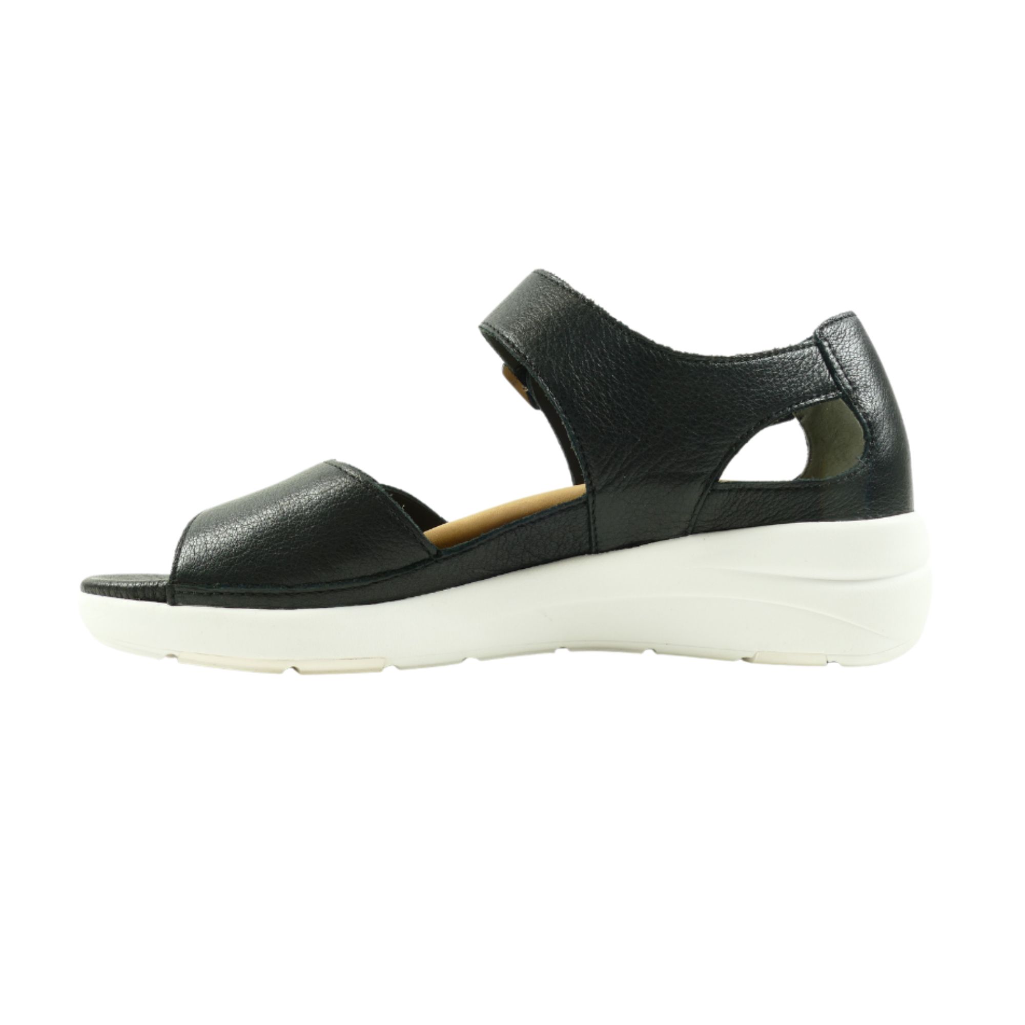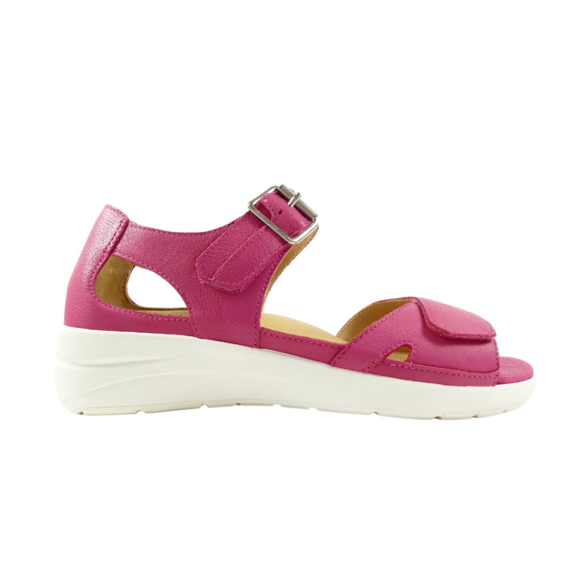 La sandale orthopédique Ziera Nenzory est fait de cuir. Ses velcros permettent de bien l’ajuster au pied. Son talon compensé vous élèvera toute en restant stable. Sa semelle intérieure est amovible et sa semelle extérieure est antidérapante. Disponible dans la largeur extra large pour les pieds plus fort.