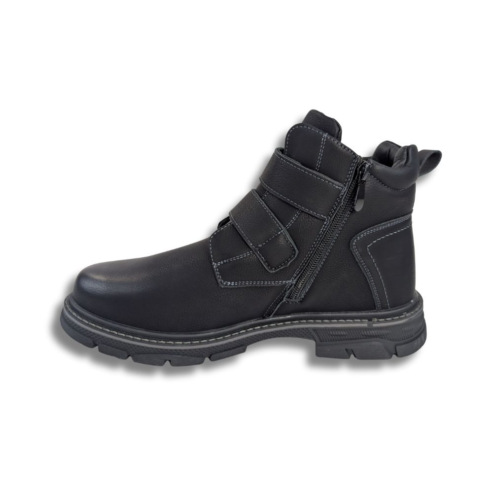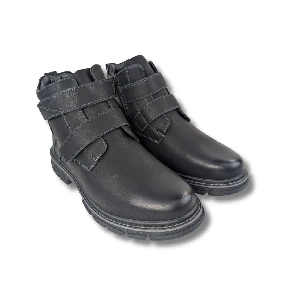 Affirmez votre style avec ce bottillon noir pour homme, conçu pour allier modernité et praticité. Sa silhouette épurée en cuir noir est mise en valeur par un détail original et fonctionnel : une fermetures éclair et deux ganse auto-agrippantes ajustables. Ce design unique assure un enfilage ultra-rapide tout en apportant une touche de caractère à votre look.