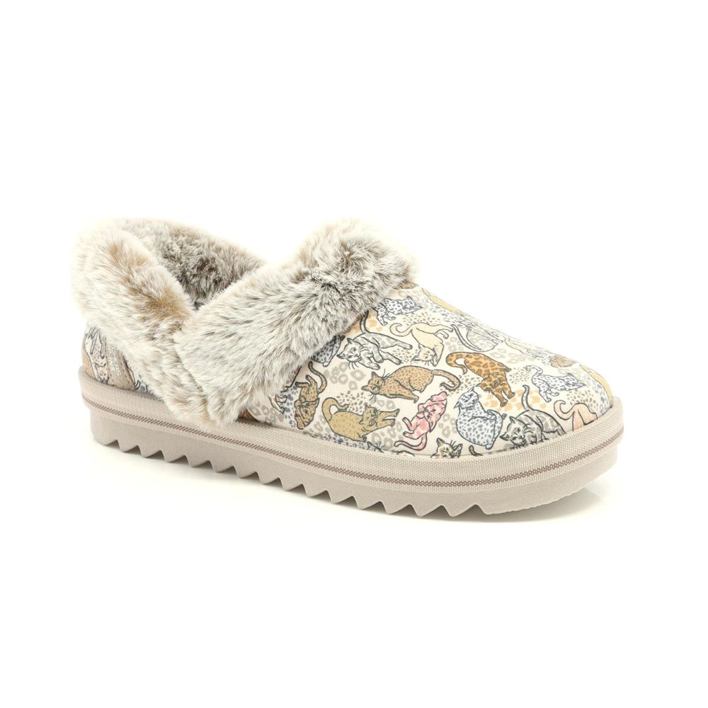 Enfilez les chaussons Skechers® BOBS® Cozy Kiss et profitez d'un confort tout en douceur avec style. Conçus avec notre coussinet au talon Heel Pillow®, ces chaussons confortables pour l'intérieur et l'extérieur sont dotés d'une tige en tissu tissé à imprimé chats, de bordures et d'une doublure en fausse fourrure, ainsi que d'une semelle intérieure Skechers Memory Foam™ moelleuse.
