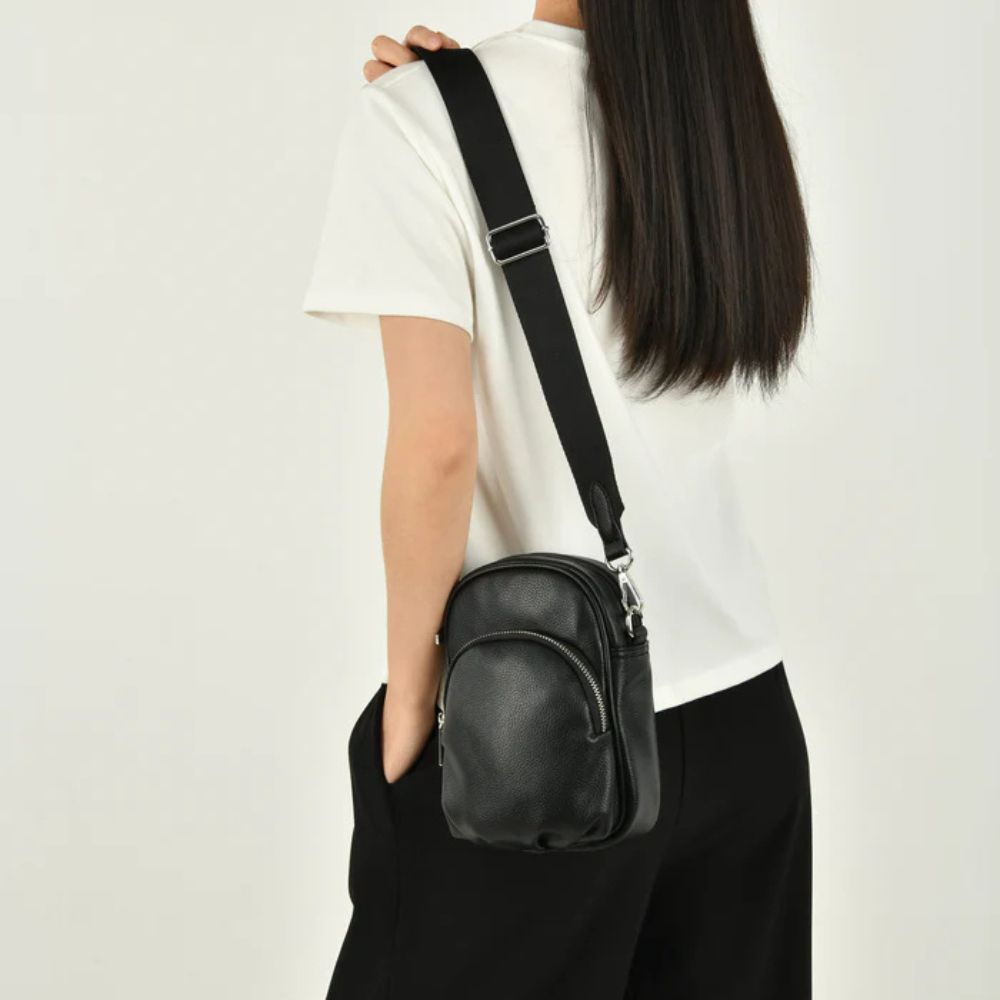 Sac OLIVIA au design minimaliste, parfait comme incontournable du quotidien. Conçu en cuir végétalien texturé recyclé, il dispose d’une ouverture à glissière sur le dessus, d’une poche avant avec fermeture magnétique, d’une fermeture éclair au dos et d’une bandoulière réglable pour un port confortable.